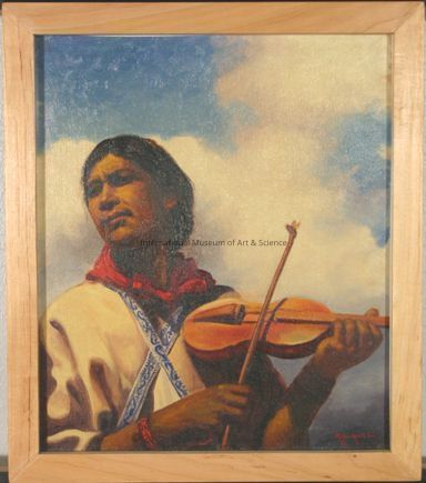 Colored painting of a person playing violin.Made/Created