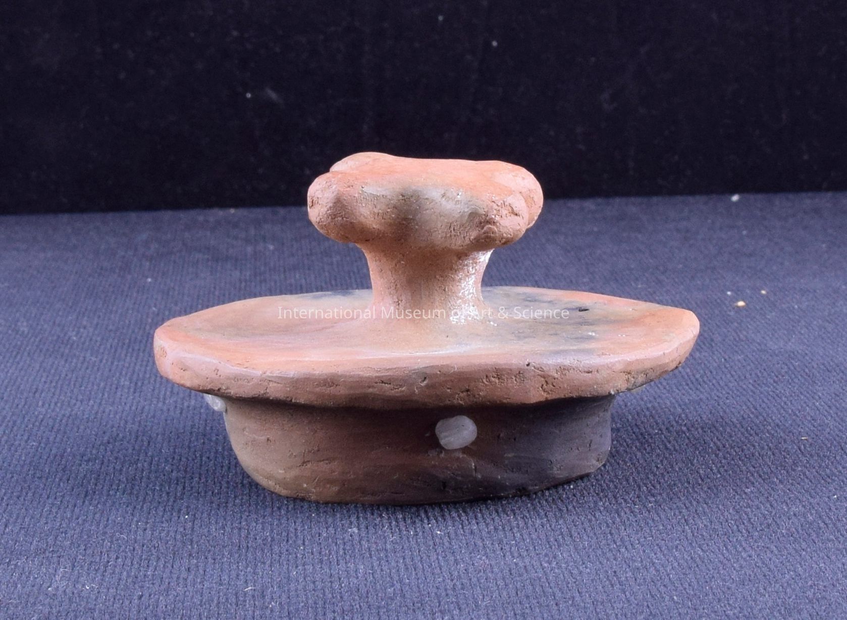 Jug with lid. Pomaro, Michoacan. Tarascan. Clay, paint. 1986. Round jug with mixed tones. 3 7/8" x 2 1/4"