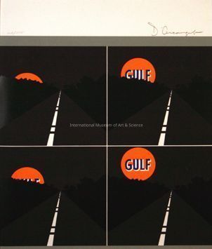 "June". Printed in Stuttgart, West Germany with four separate views; depicts distance on a road, approaching large bright orange "GULF" sign.Dimensions
