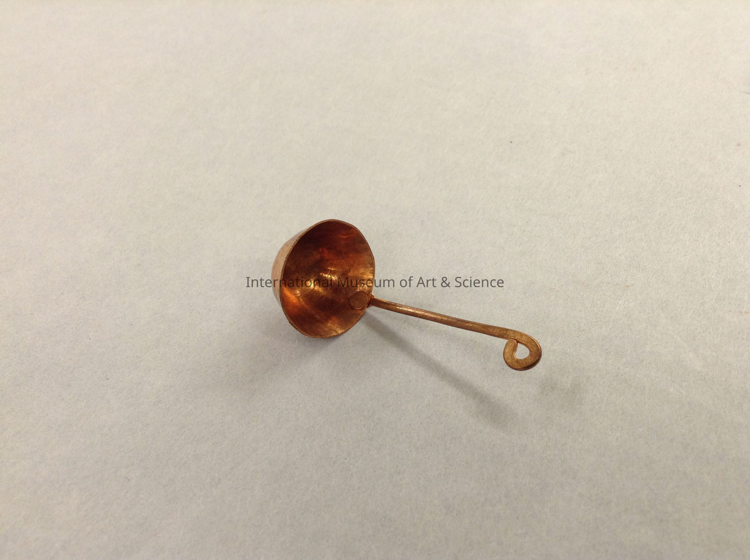 A miniature ladle. The scoop is wide with a tall handle. It is part of a 14 piece kitchenware set.Dimensions