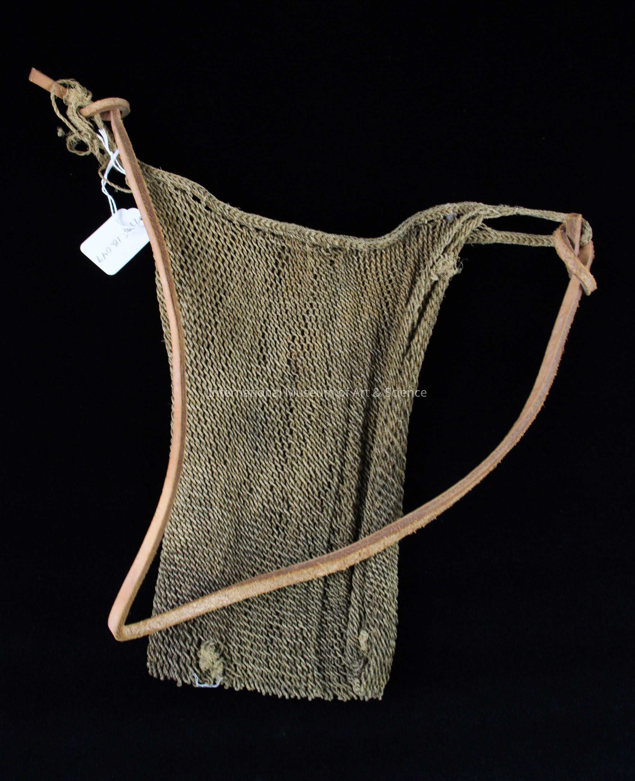 A man's bag (redes). It is flat and rectangular in shape. It is natural in color, and has an open-mesh pattern.