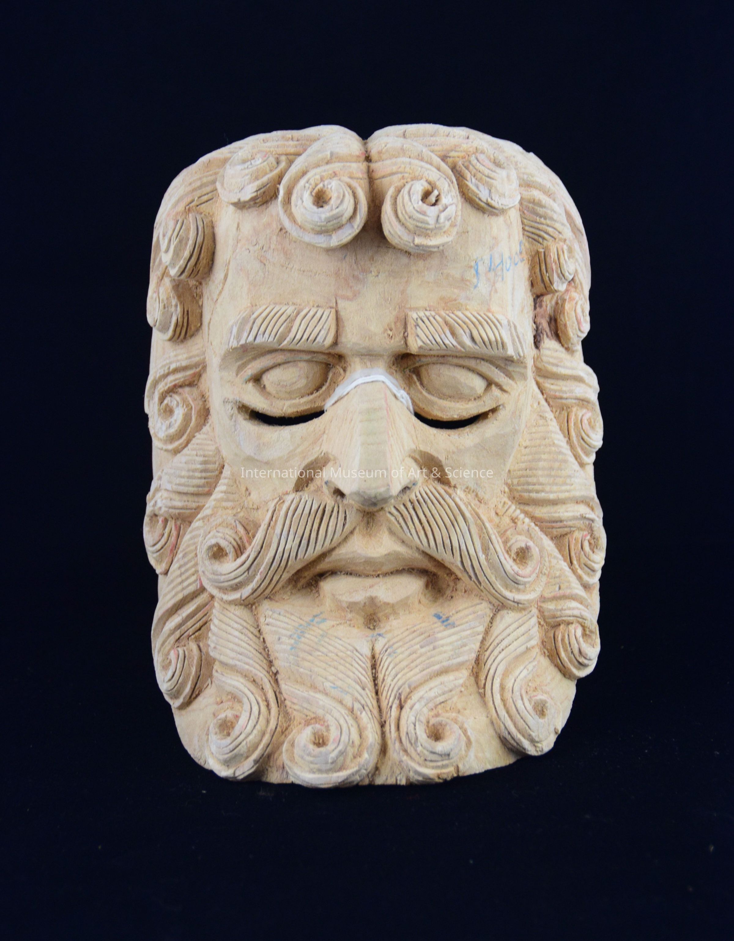 Moro Chinos character. Unpainted wooden mask of a man's face.Artwork Details