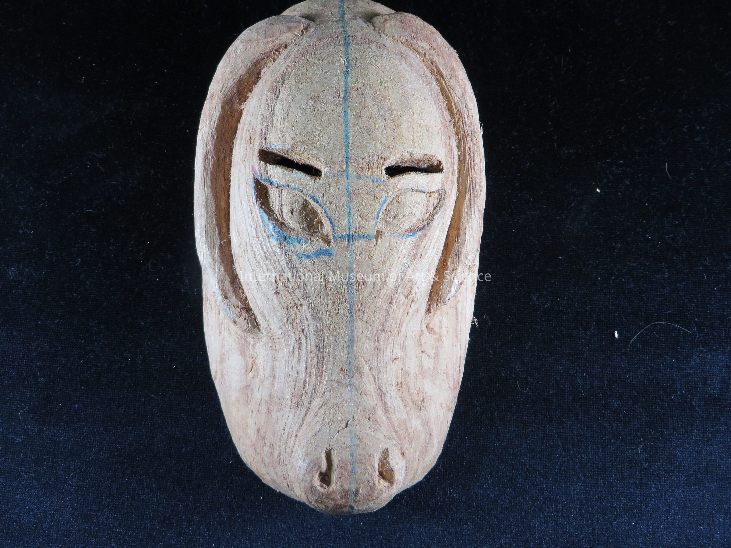 Chivo (Goat). Unpainted wooden carved goat mask. Lines drawn on with some kind of marker. Jan.-Feb. 1986.Dimensions