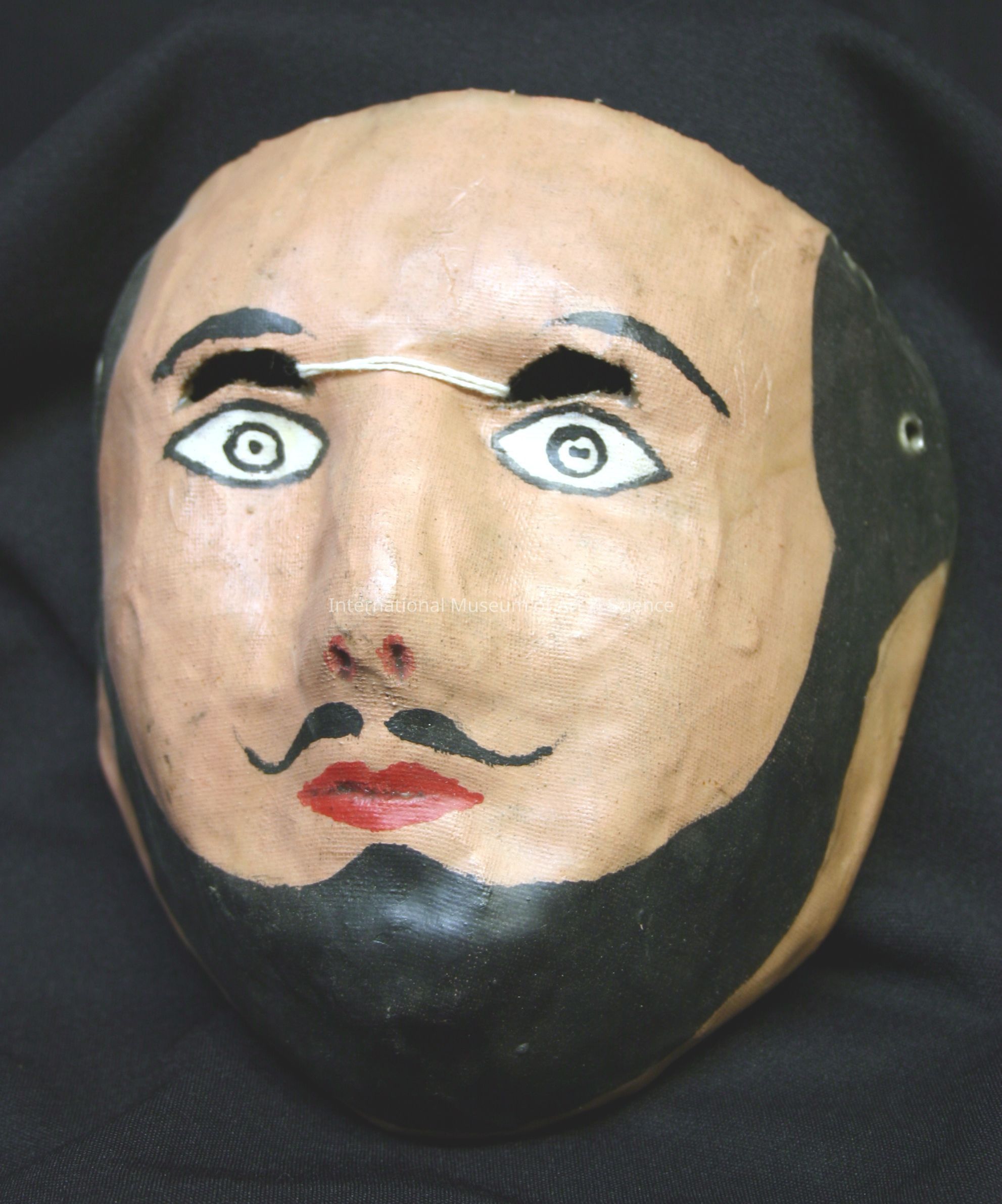 Wax mask; male; flesh-colored; black/white eyes; black moustache and beard; red lips and nostrils; waxed over.Artwork Details