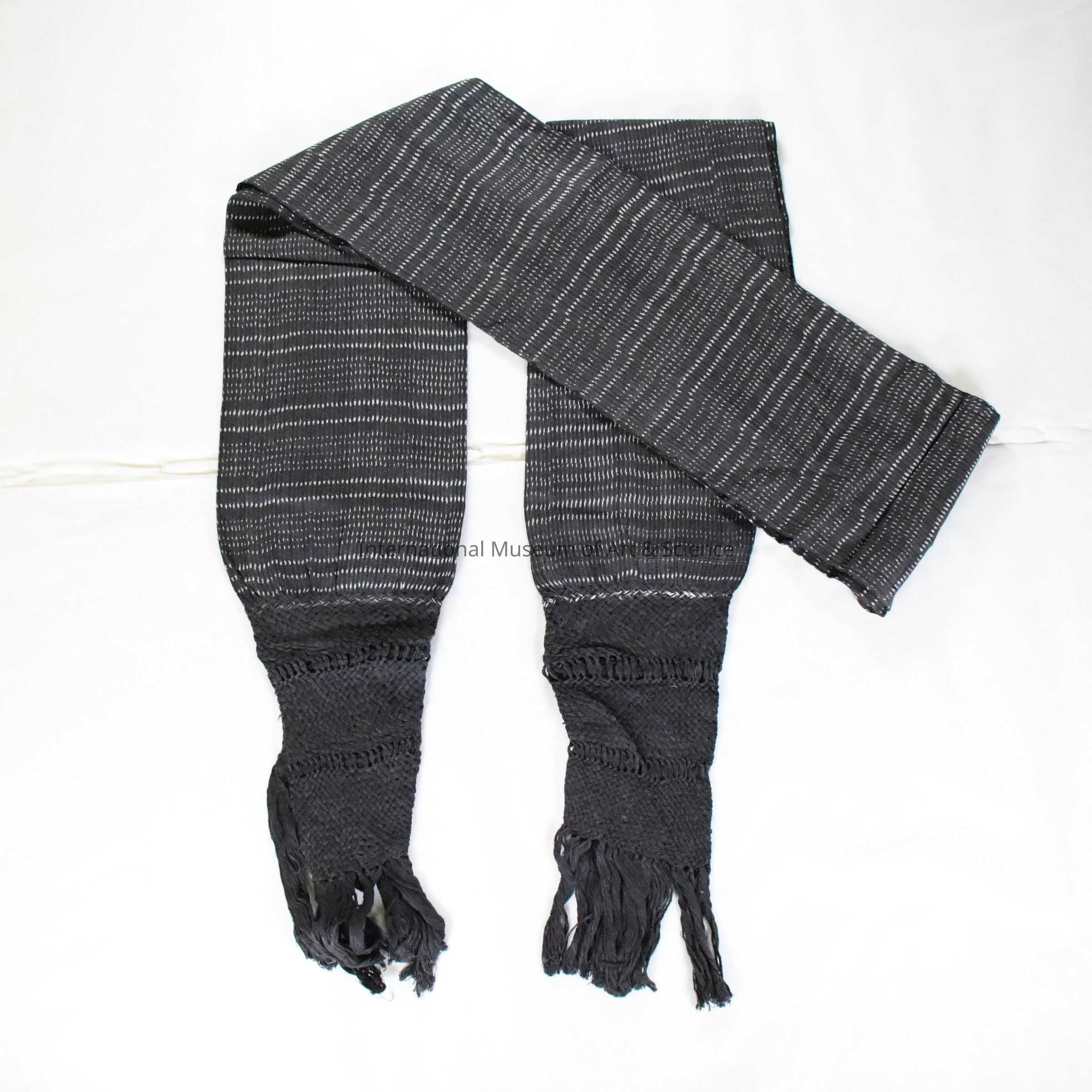 The ends of the rebozo transition into finely woven empuntado sections using a basketweave-like technique that forms a tight, textured panel above the fringe. Below this, the warp threads have been loosely twisted into decorative tassels, completing the textile with both function and style. Though simple in design compared to more elaborate ikat rebozos, this piece remains highly representative of the foundational styles worn throughout Mexico.Ethnography