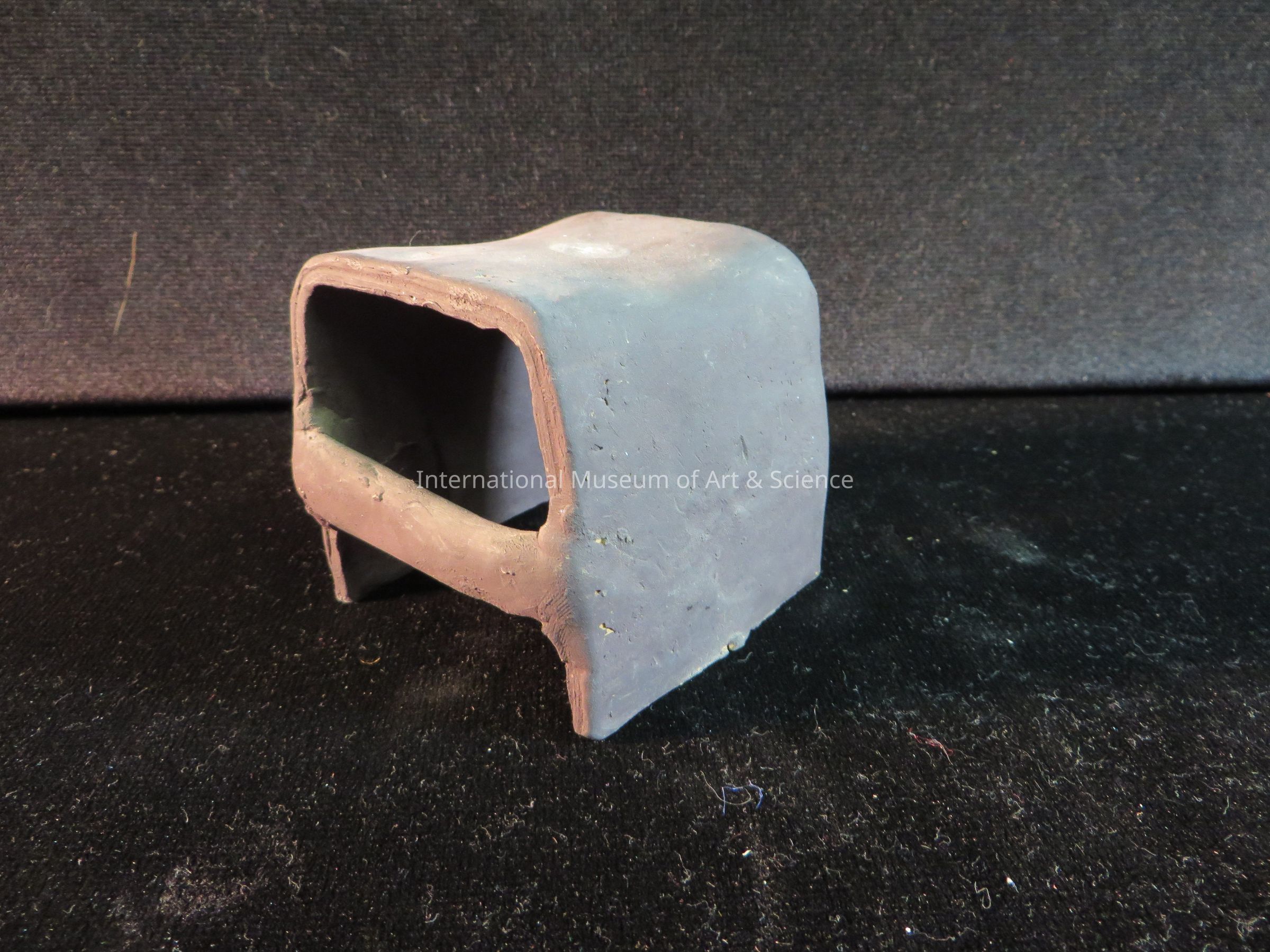 Chair, U-shaped chair with flat horizontal bar connecting two sides, painted dark purple/brown. This piece is part of 40 piece wedding scene by Josefina Aguilar.Dimensions