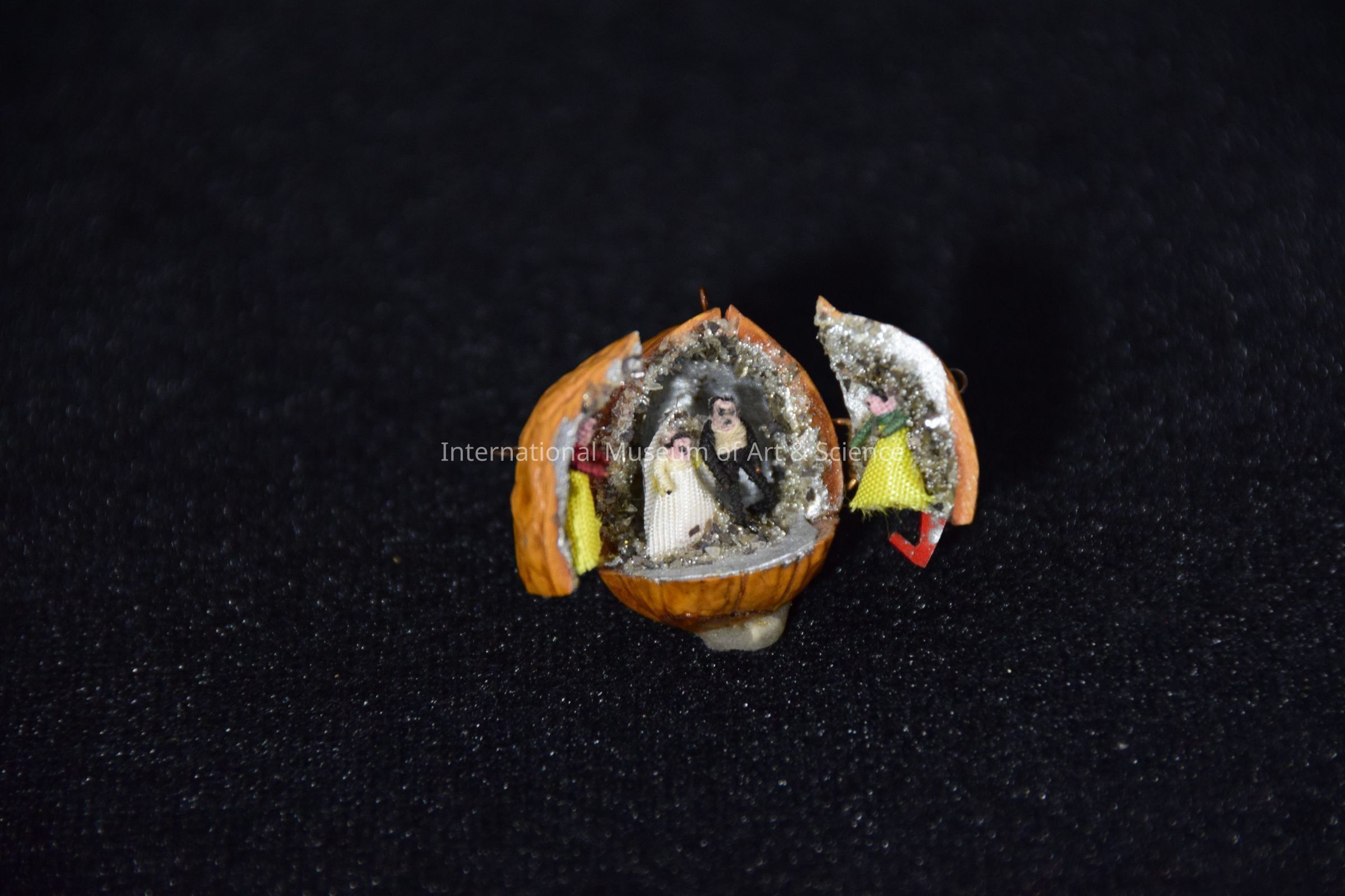Miniature wedding scene. A walnut shell with a wedding scene inside. Bride and groom in center; members of the wedding in the two open doors.Artwork Details