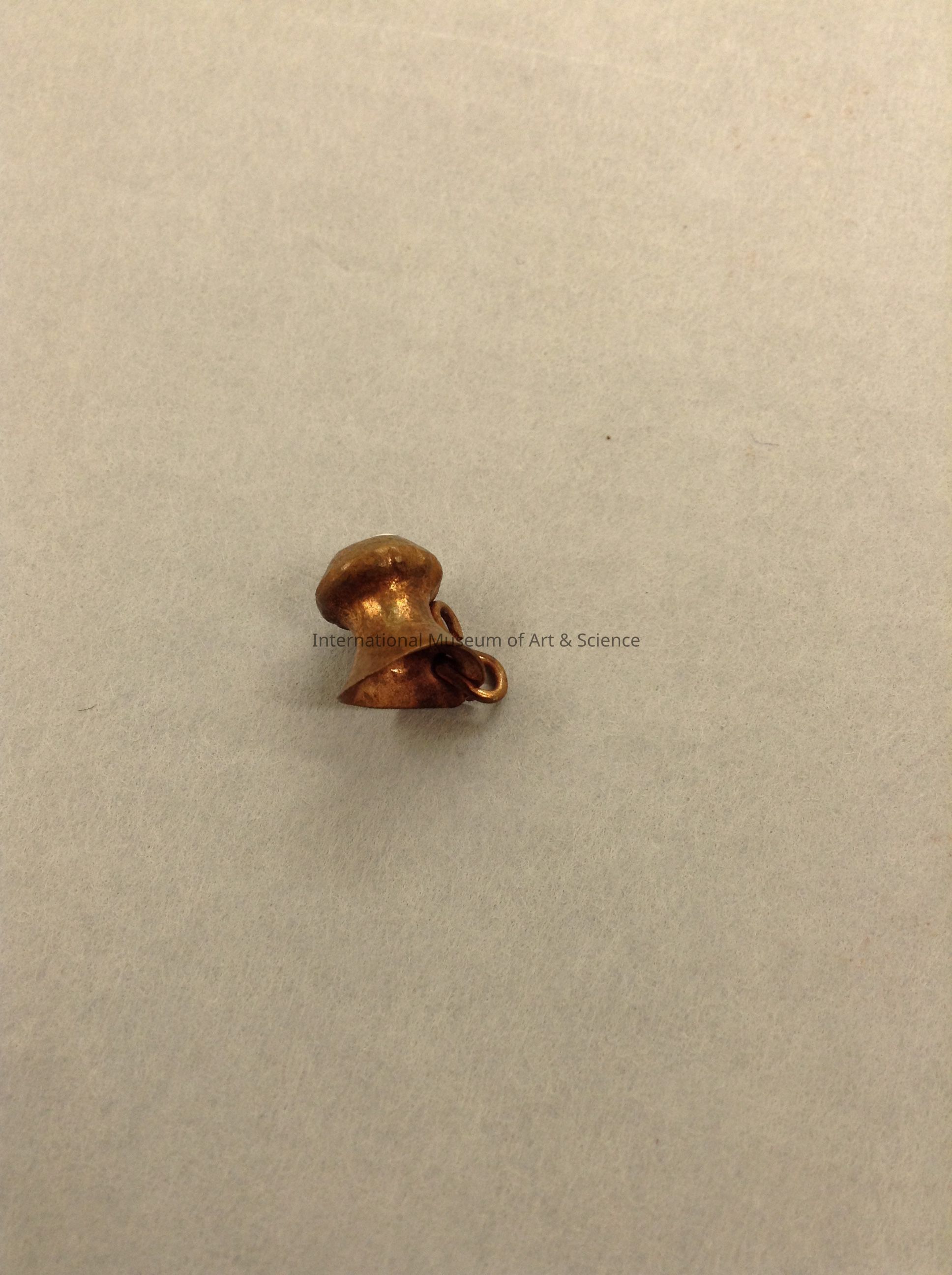 A miniature mug. It has a wide mouth and a copper wire for the handle. It is part of a 14 piece kitchenware set.Dimensions