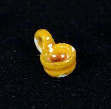 A miniature cup. The cup is ceramic and glazed in yellow.
