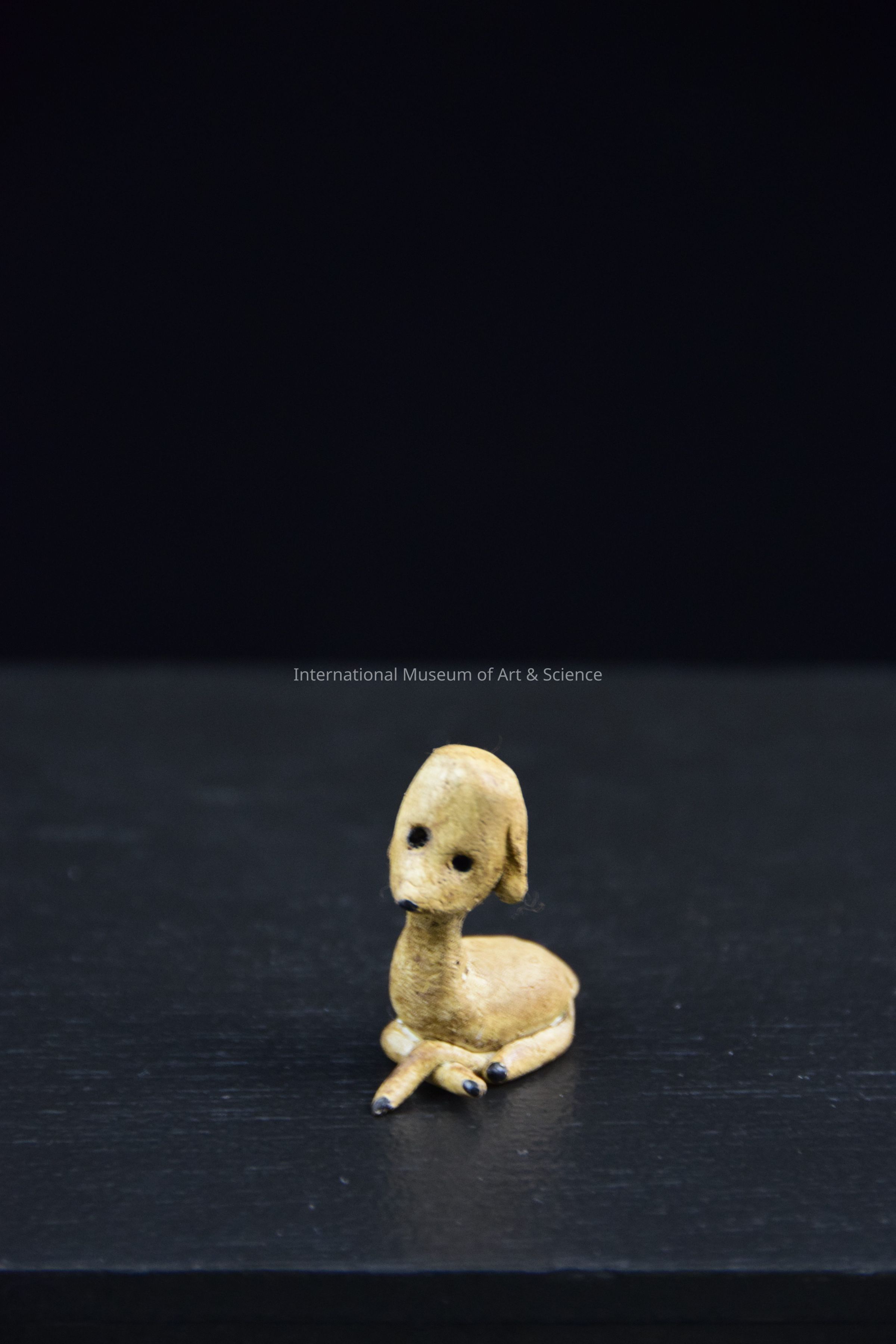 A clay figurine of an animal. It is part of a Nativity Scene.