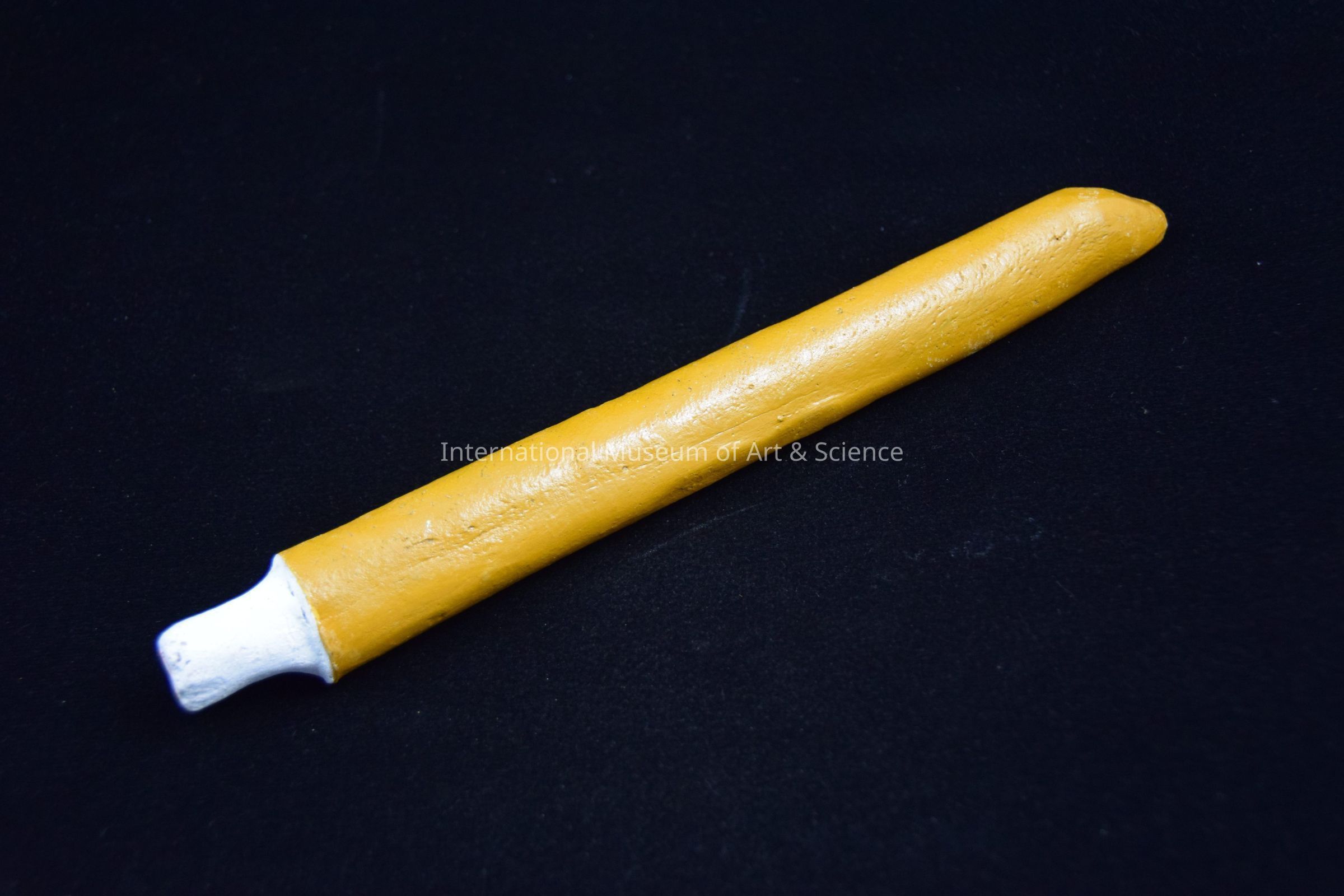 A ceramic pillar, glazed in orange which is one of 4 that stands on a base and holds up a roof-canopy. All of the pieces together create a palace with a sloped scalloped roof with four poles that support the ceiling. It is a 6 piece set.