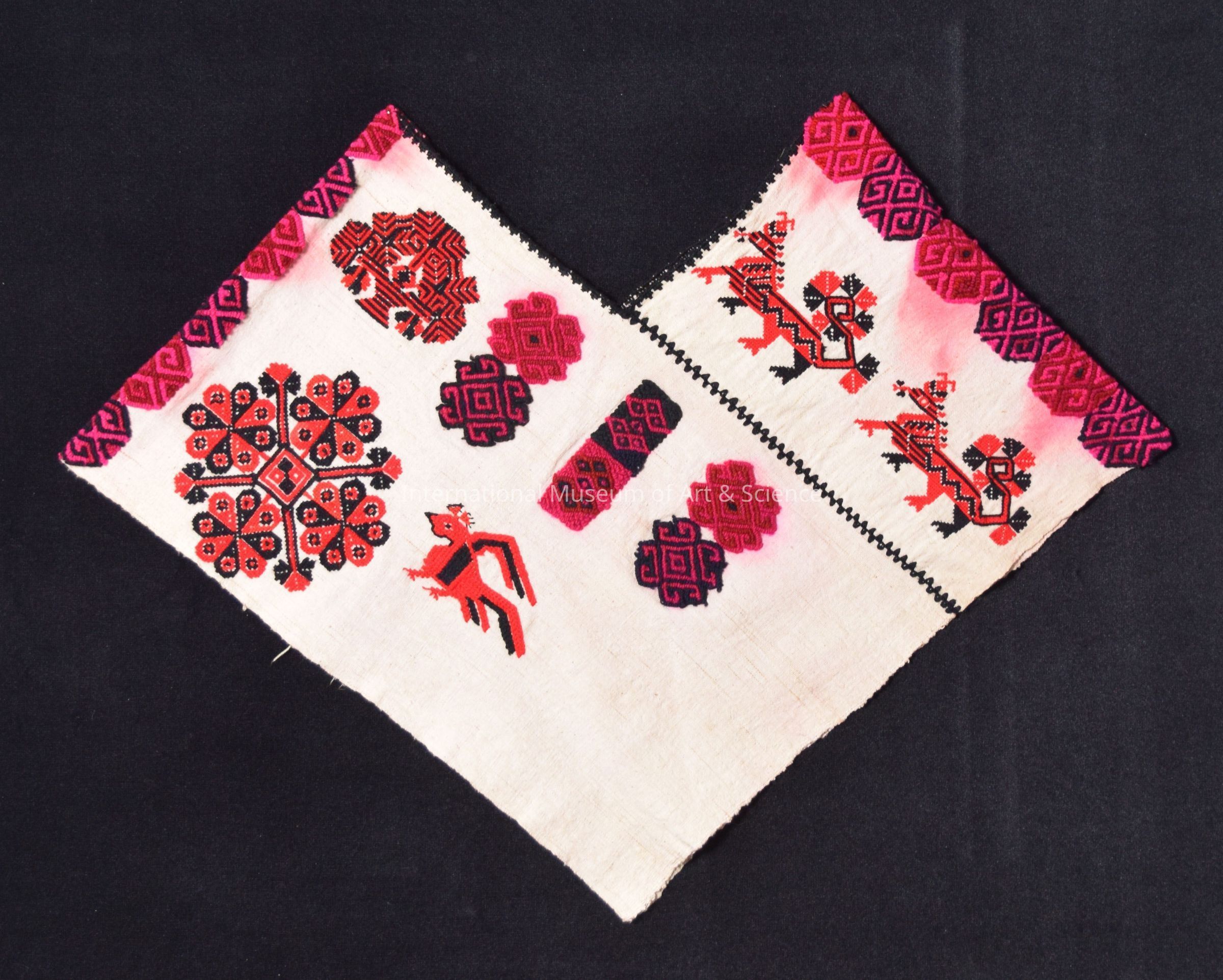 Quechquemitl. Embroidered with black acrylic yarn on the "V" neck and across chest. Has geometric floral, trees, and animal motif.Artwork Details