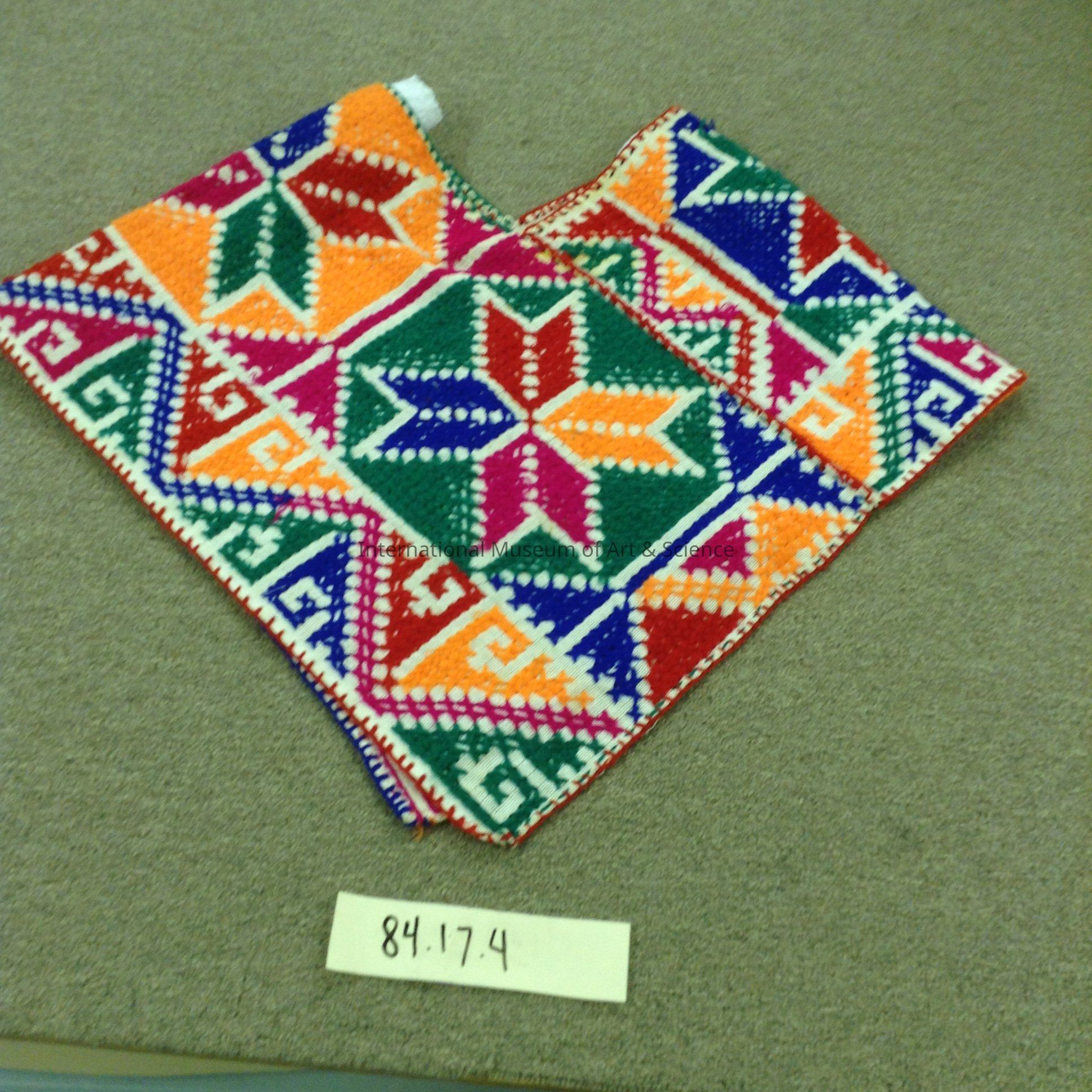 V-shape top and bottom on both sides; geometric designs with multi-colored yarns.