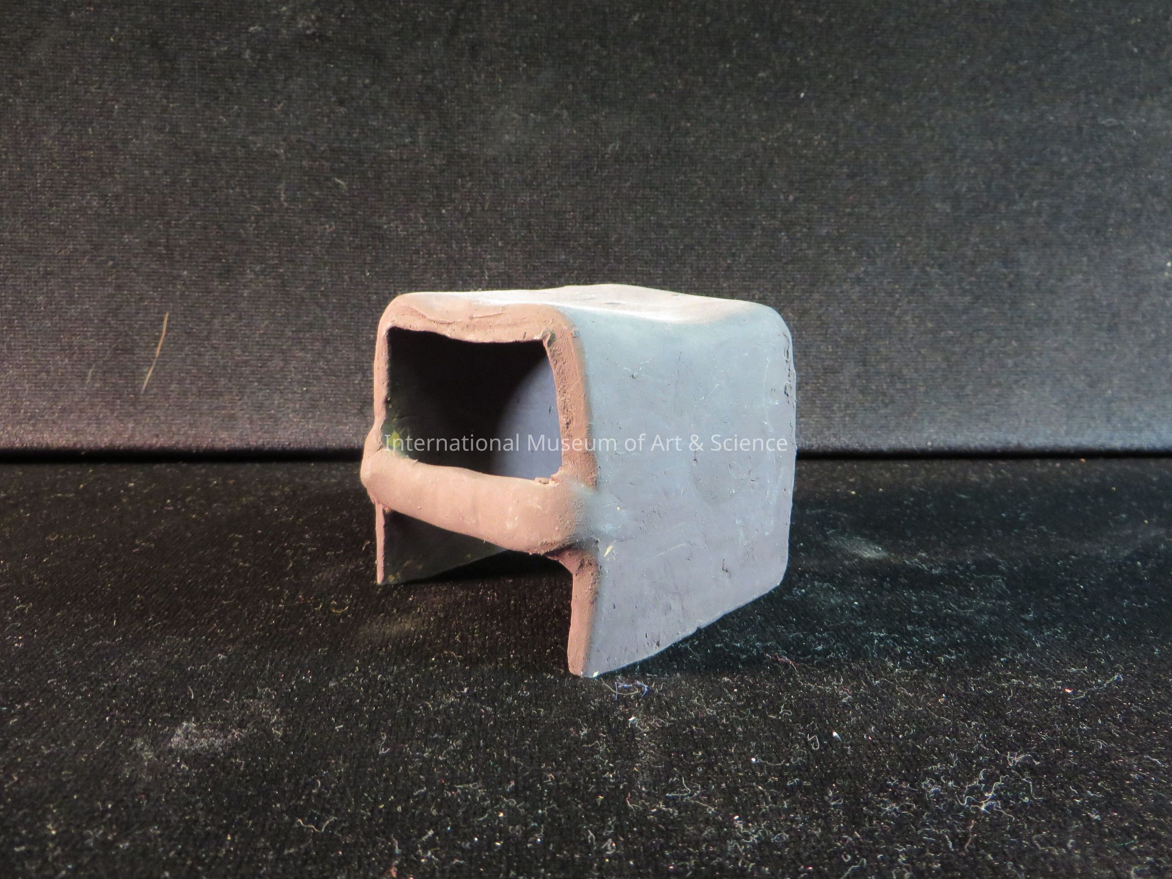 Chair, U-shaped chair with flat horizontal bar connecting two sides, painted dark purple/brown. This piece is part of 40 piece wedding scene by Josefina Aguilar.Dimensions