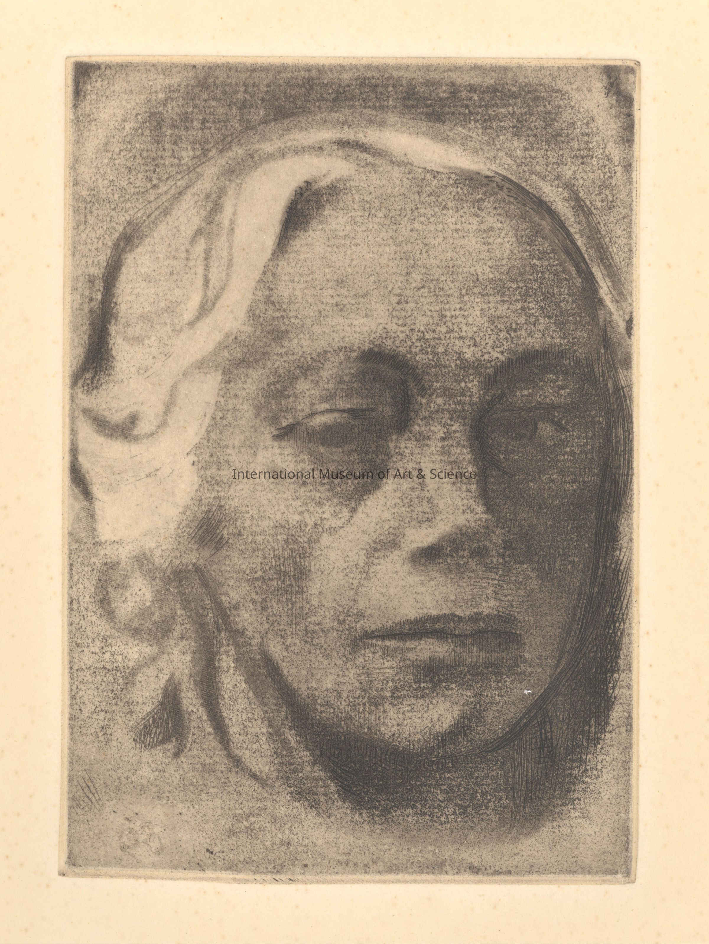 "Self-Portrait" Original etching (restrike). etching and soft-ground printed in brown, 1912, signed in pencil, also signed by the printer. Felsing, on Japan paper, with full margins.Dimensions