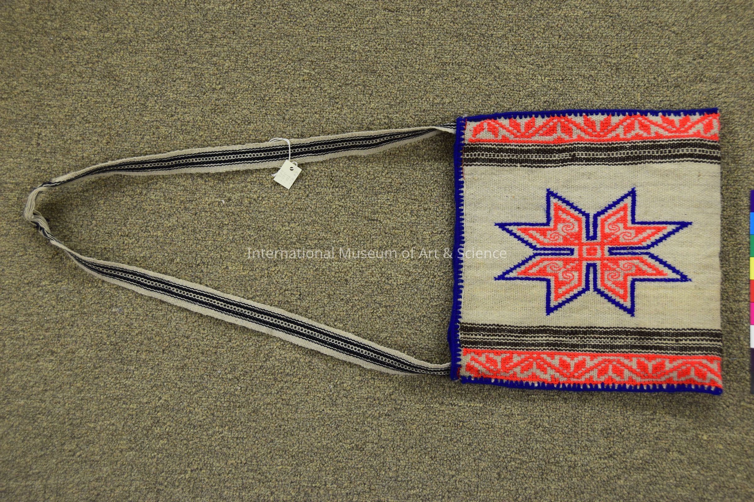 Bag. Dark blue border; beige ground; star design in center. Including strap.