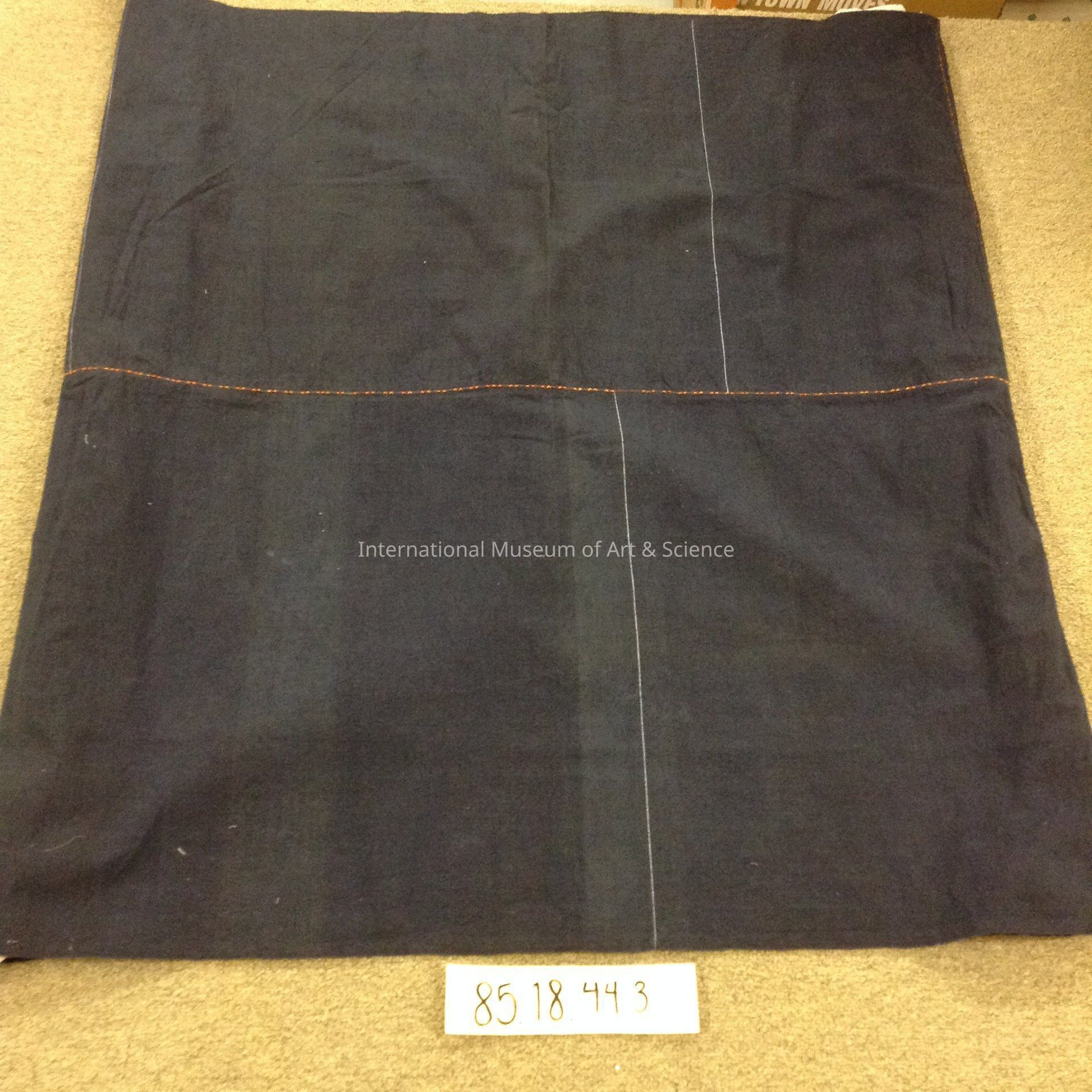 Skirt. Overall dark blue skirt; fine white vertical lines and single horizontal lines of red, green w/ yellow.Made/Created
