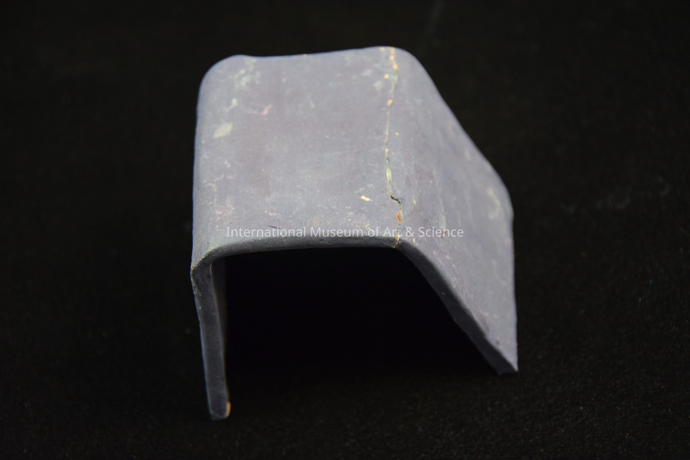 A ceramic figurine of a bench. It has been painted grey and has no back. It is part of a 26 piece The Last Supper Scene.