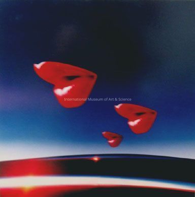 "The Mother, The Daughter and The Holy Goddess". Mansfield, American. Photograph. Unknown Date. Triple formation of flying lips over Sunset/rise horizon, reds, blues; mounted on paper and masonite.Artwork Details