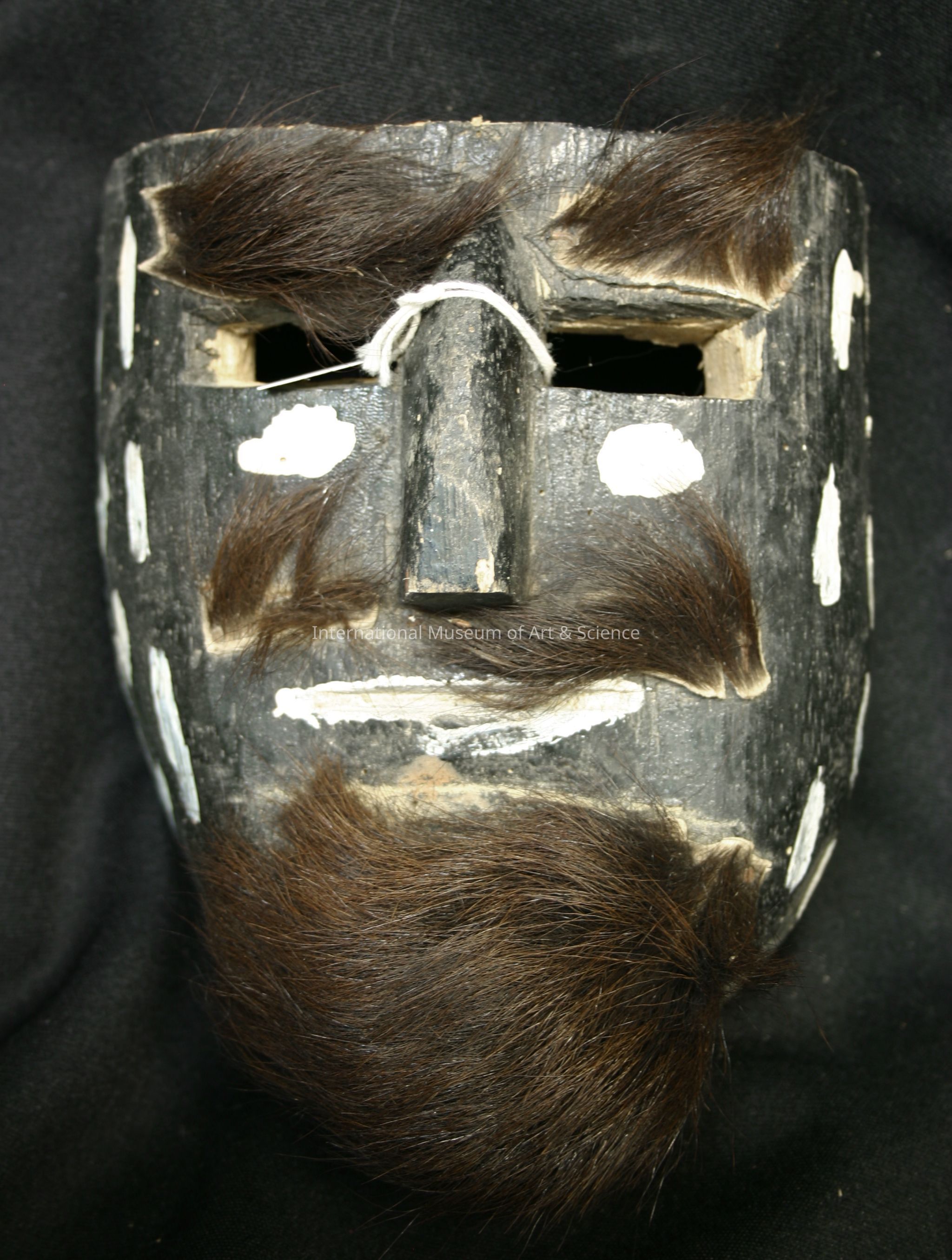 Tlacololaro mask. Overall black mask; animal hair as eyebrows, moustache and beard; rectangular eye-openings, white markings on face.Artwork Details