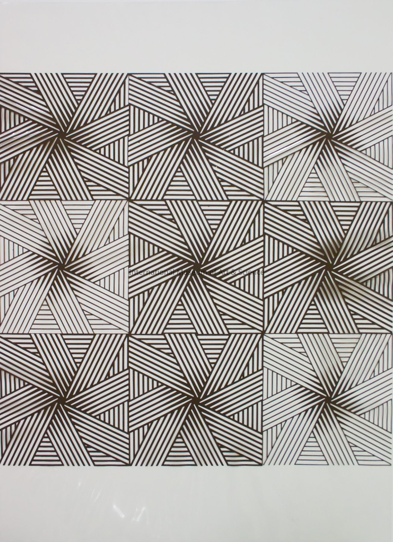 "Transparency and silkscreen". Herbert W. Kapitzki, German. Silkscreen and transparency. 1970-1971. Printed in Stuttgart, West Germany a) Transparency is untitled; has brown linear designs forming diamond and triangle illusions; same designs are printed on the silkscreen sheet; b) Silkscreen sheet is of beige and dark gray; "1971" on the bottom section to the left; symbol and "Ein Domberger" Siebdruck Kalender printed on the bottom section.Artwork Details