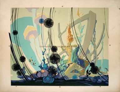 "Under Water Scene and Open Sea Chest". Serigraph of two women exploring a treasure chest underwater. Printed on board.Dimensions