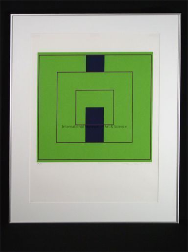 "Untitled". Green background with violet lines and dark blue rectangles, 59/110. Credit: The Clark Collection.Dimensions