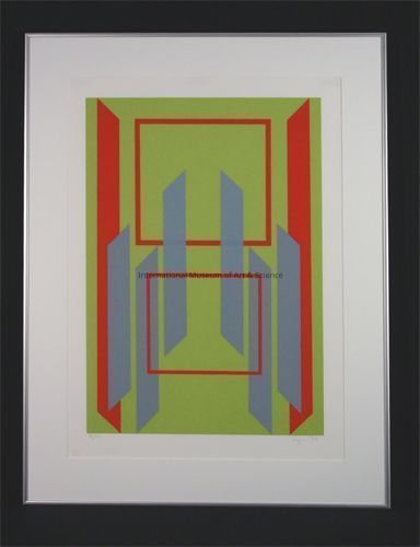 "Untitled". Yellow-green back ground with gray-blue and orange geometric shapes, 59/110.Dimensions