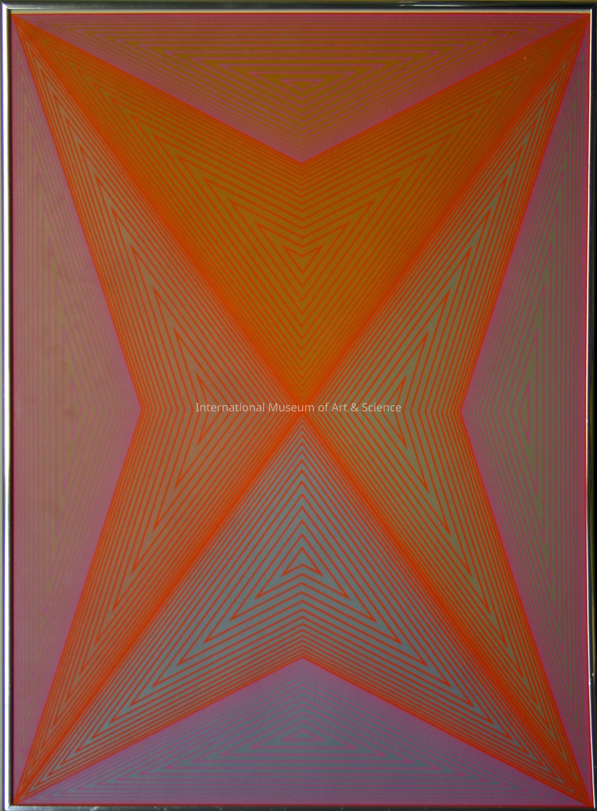Untitled. Richard Anuszkiewicz, American. Serigraph. Date Unknown. Geometric abstraction, orange, lavendar, blue, green & brown.Made/Created
