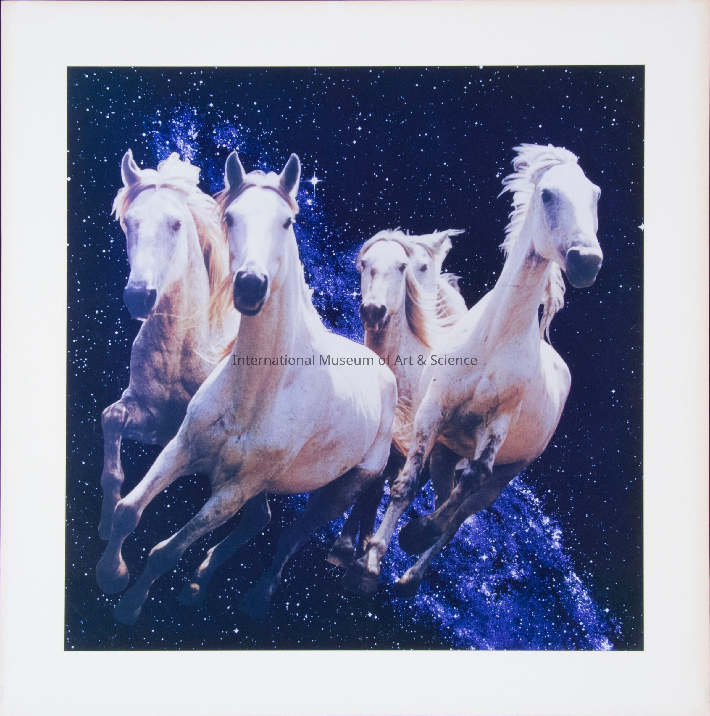"Untitled". Mansfield, American. Photograph. Unknown Date. Five white horses through the Andromeda nebula; mounted on white paper and masonite.Artwork Details