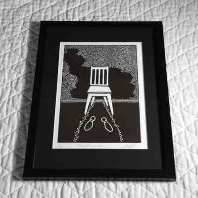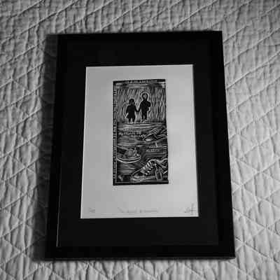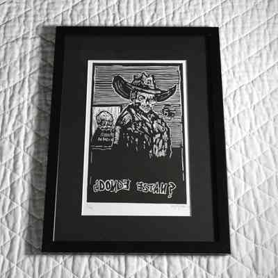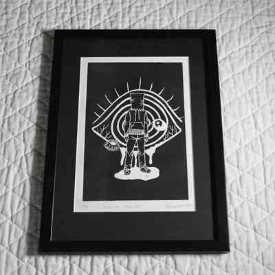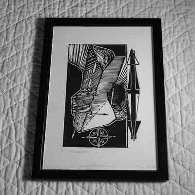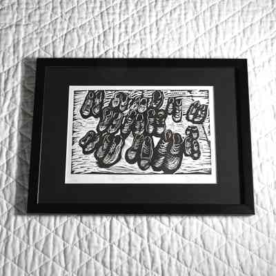 Ultimo Pasos by Dante Ulises Vazquez, linoleum print.