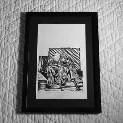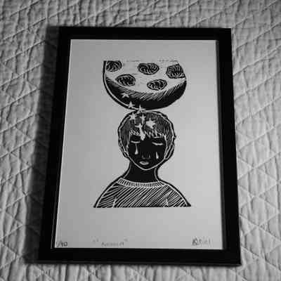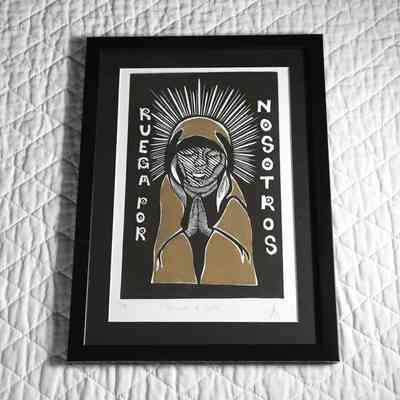 #nos_falta_absalon by Martha Elizabeth Ruíz Rodríguez, linoleum print.