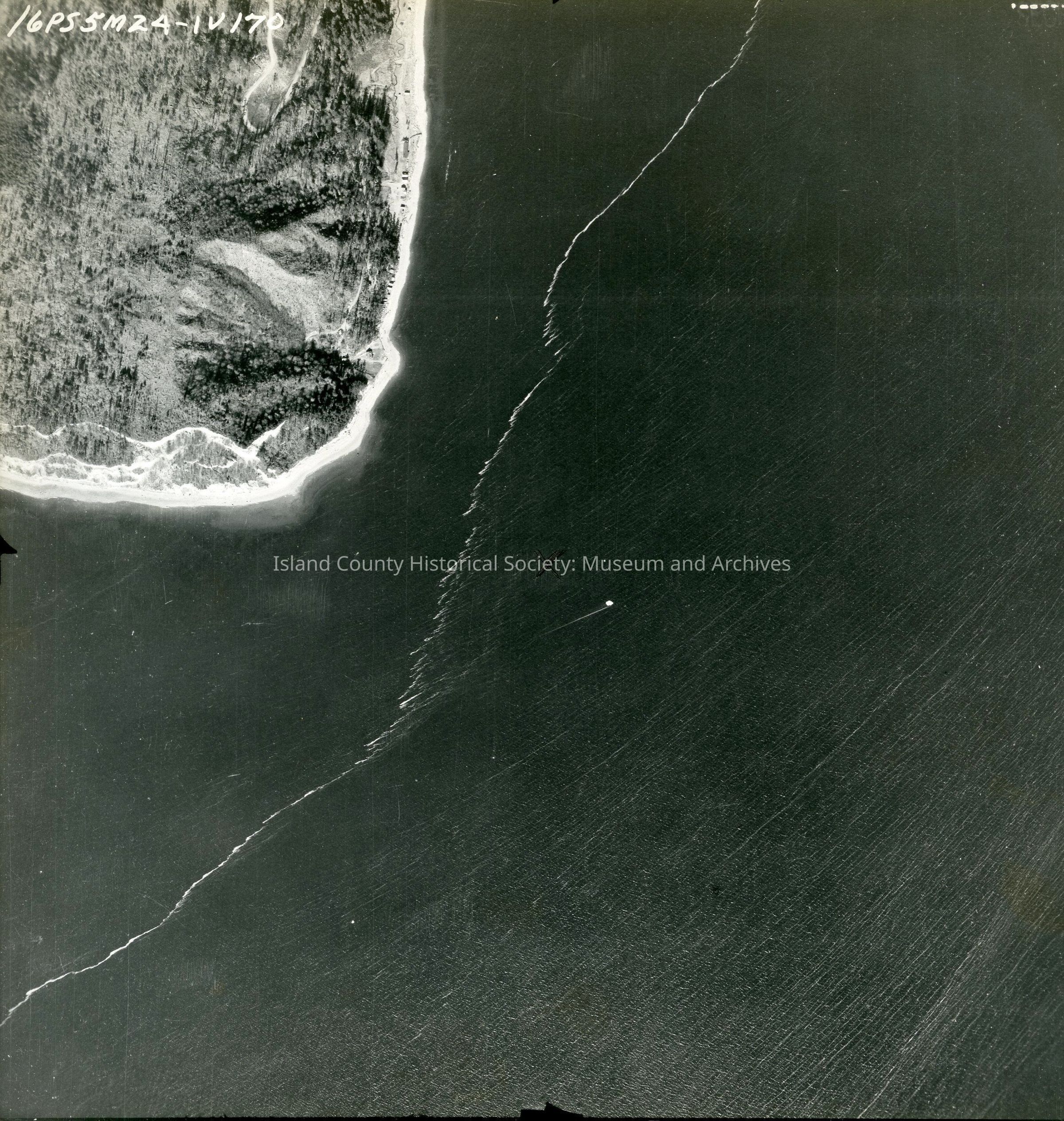 Donated by Island Conservation District Adjoins 2015.023.040 16P55M24-IV170 East corner of Possession Point. Majority of photo is water. Back states "Copied Dec. 20 195(8?) See GIS for digital copies.