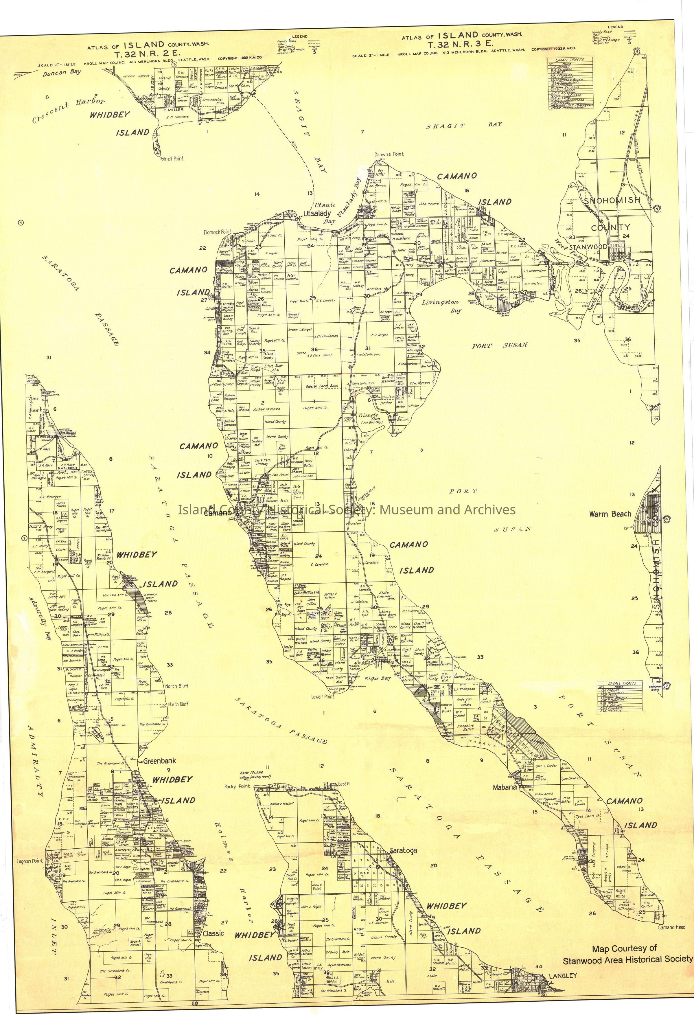 Map of Island County: Includes precincts and communities on Whidbey and Camano Islands, surrounding waterways and area.Archive Details