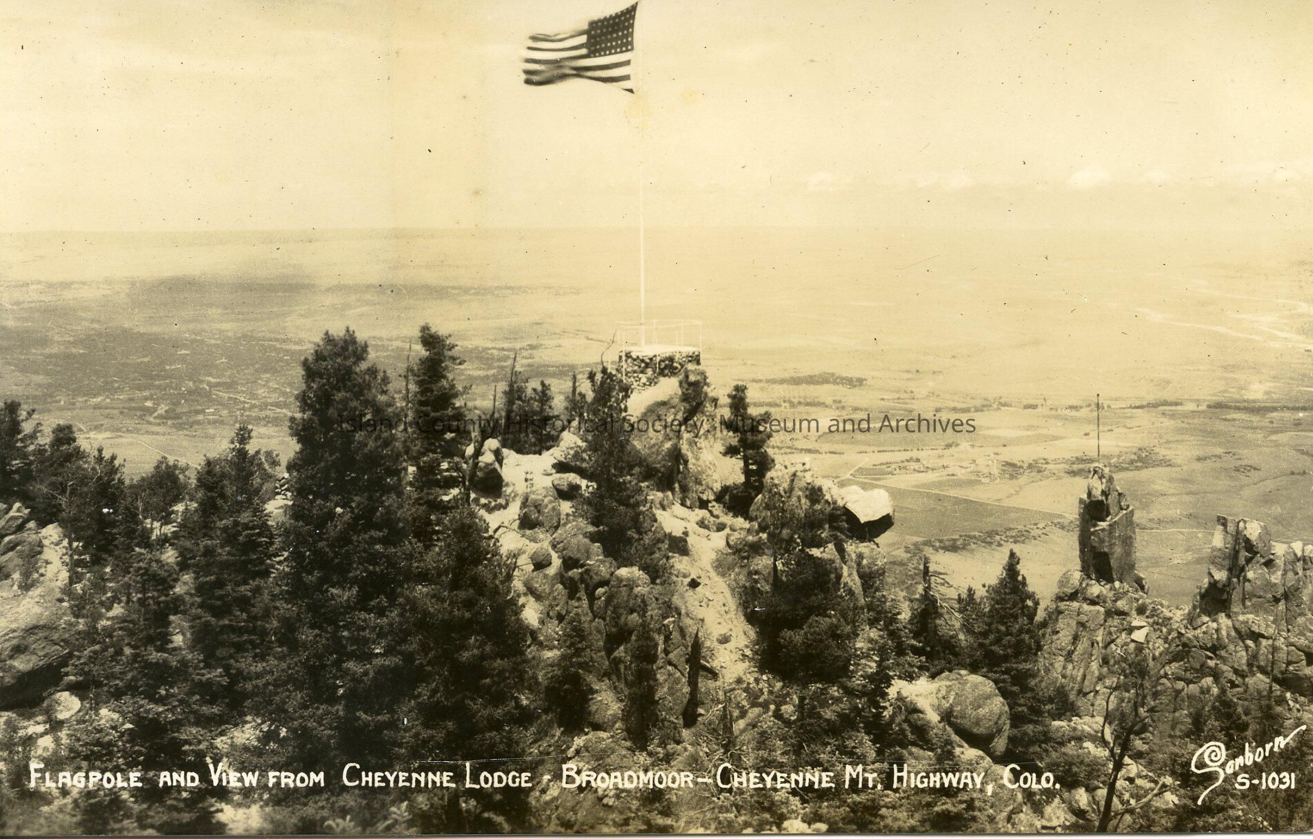 Flagpole and View from Cheyenne Lodge- Broadmoor - Cheyenne Mt Highway, Colo
