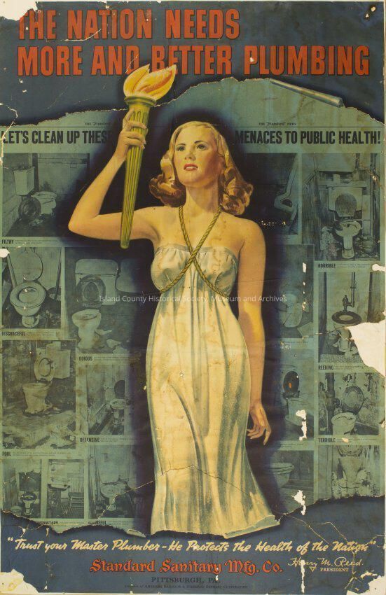 Color poster, "The Nation Needs Better Plumbing". On the back: Square Footer's Club names.