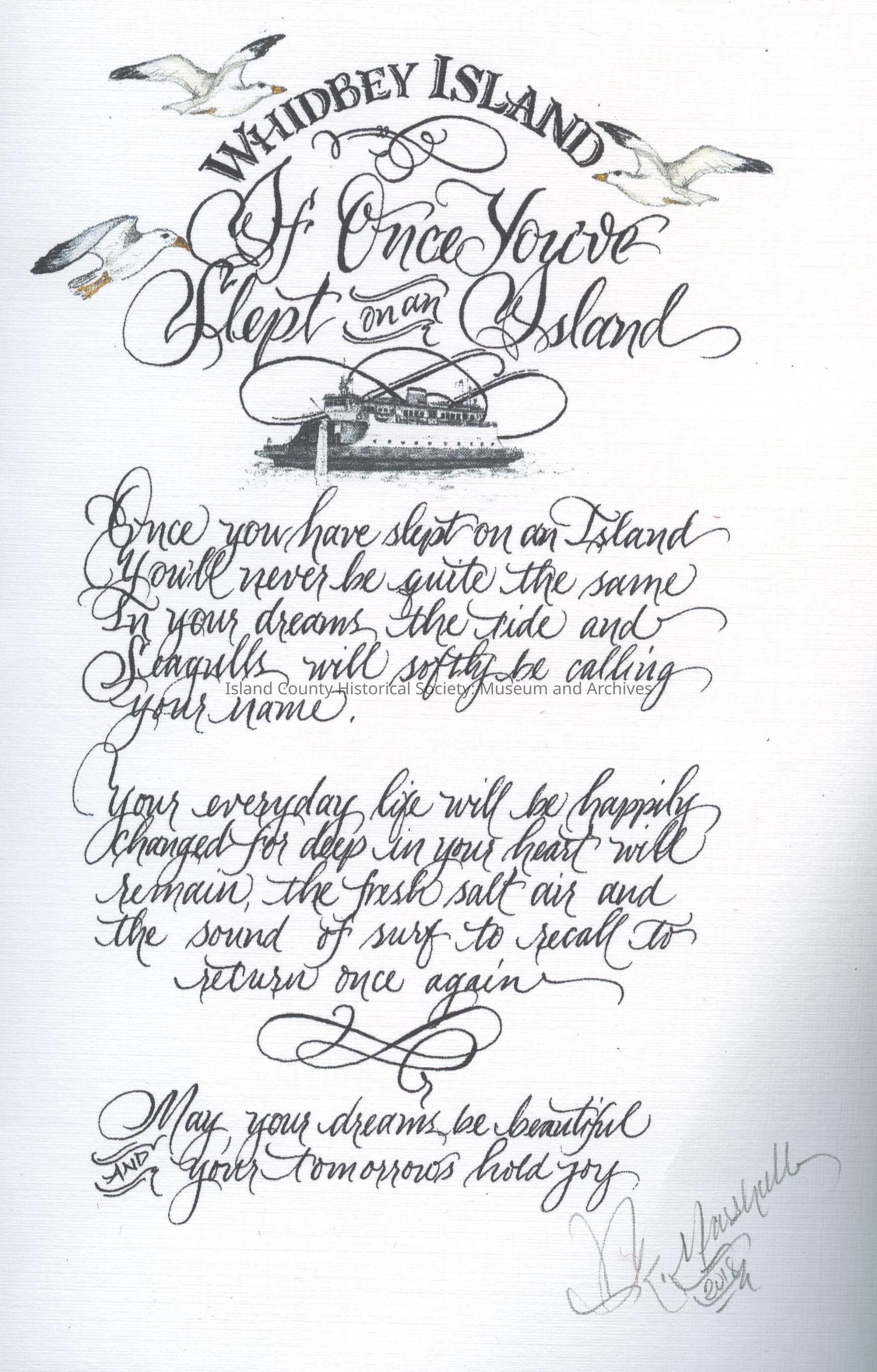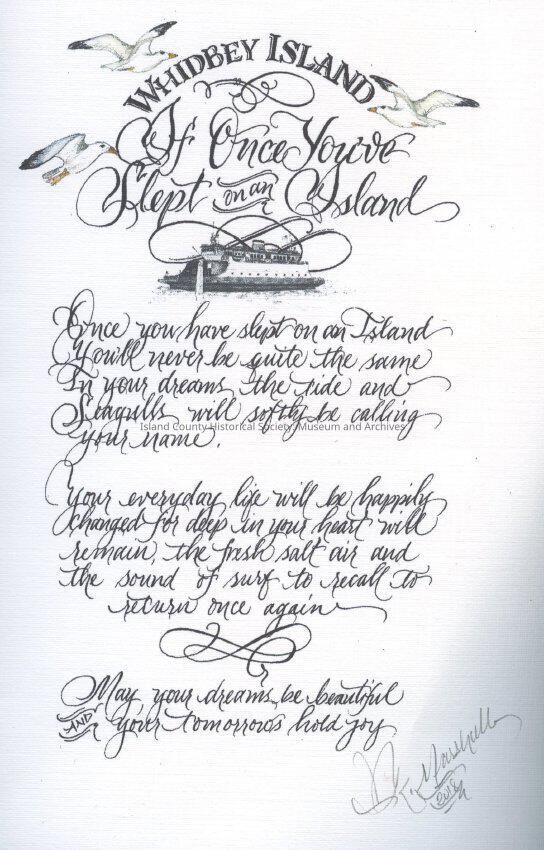 Whidbey Island "Once You've Slept on an Island" card with calligraphy script on the front