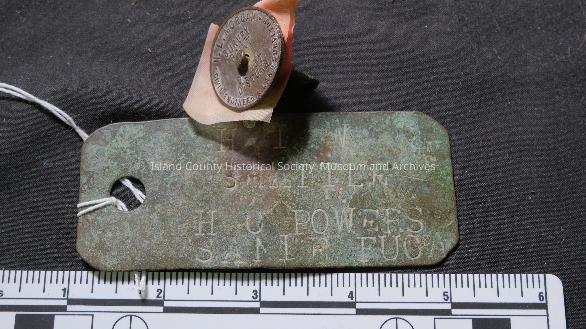 survey point marker, H.I.W. Shattle, H O Powers, San De Fuca
