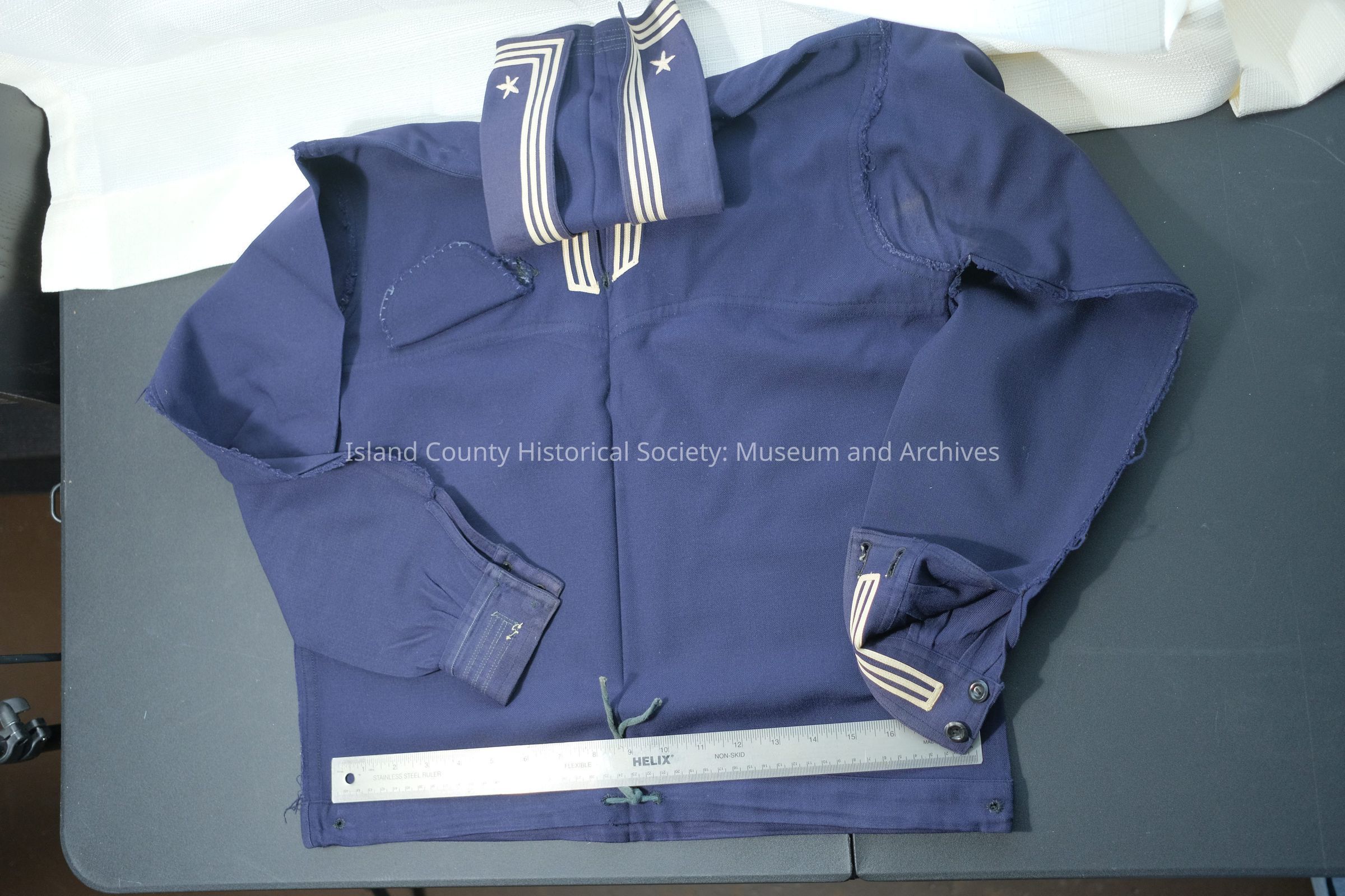 blue long sleeve Navy sailor top w/ white striping and stars on lapel