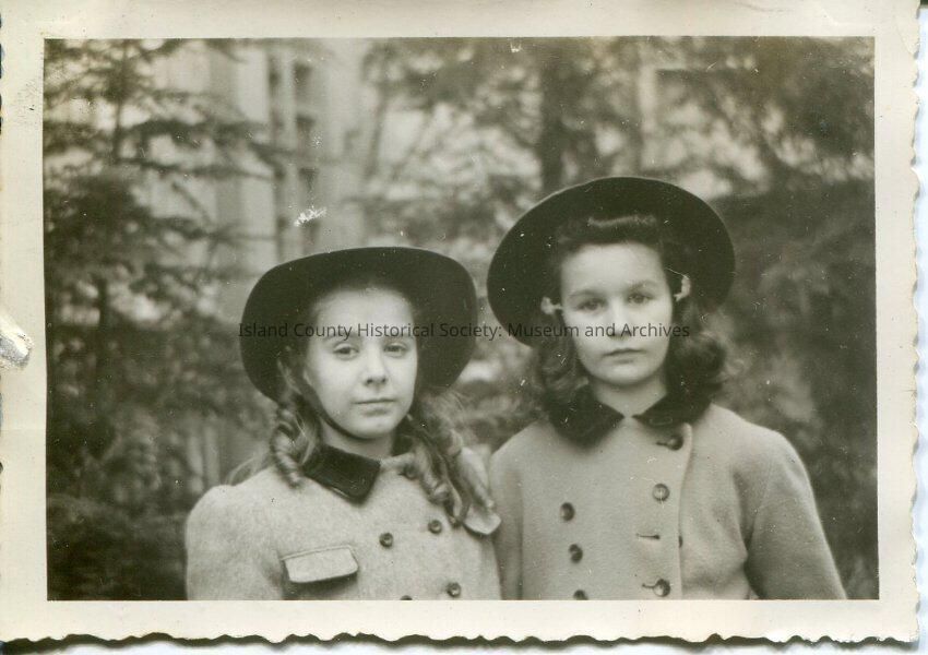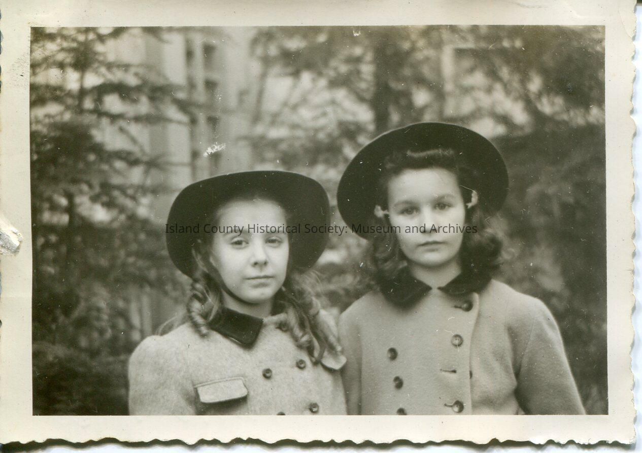 A photo of two girls looking at the camera. They are both wearing hats and behind them are trees. Robin Currier (Kellogg)