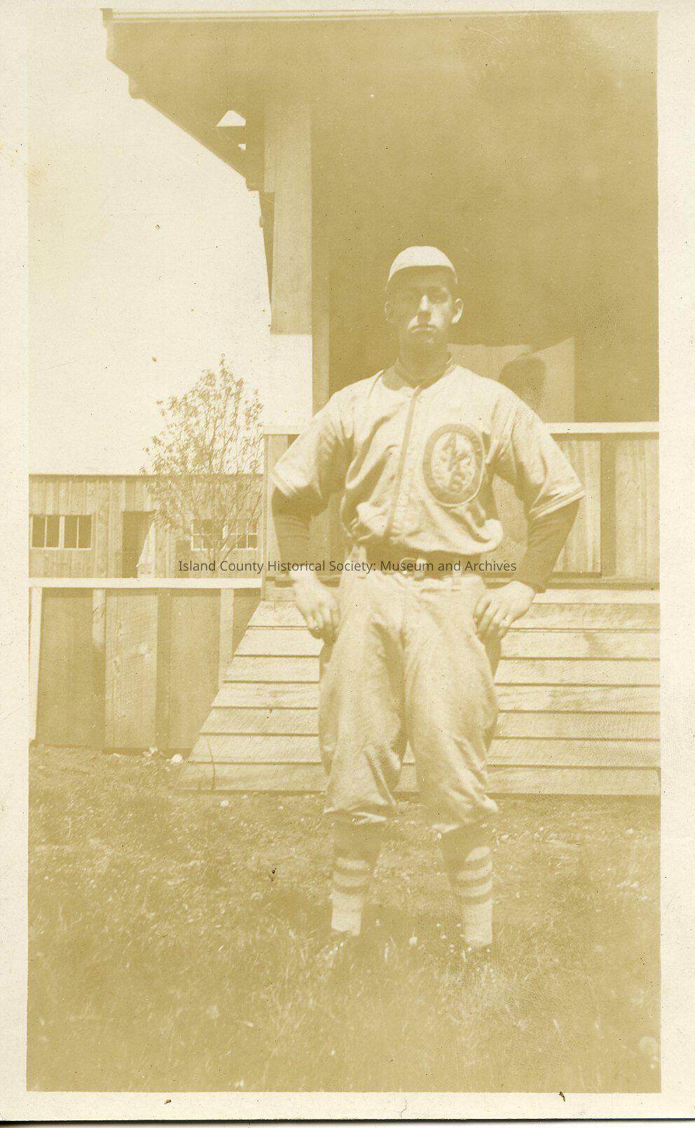 A photo of a man in a baseball outfit with his hands on his hips. Handwritten on the back it says "Ted Hill".Made/Created