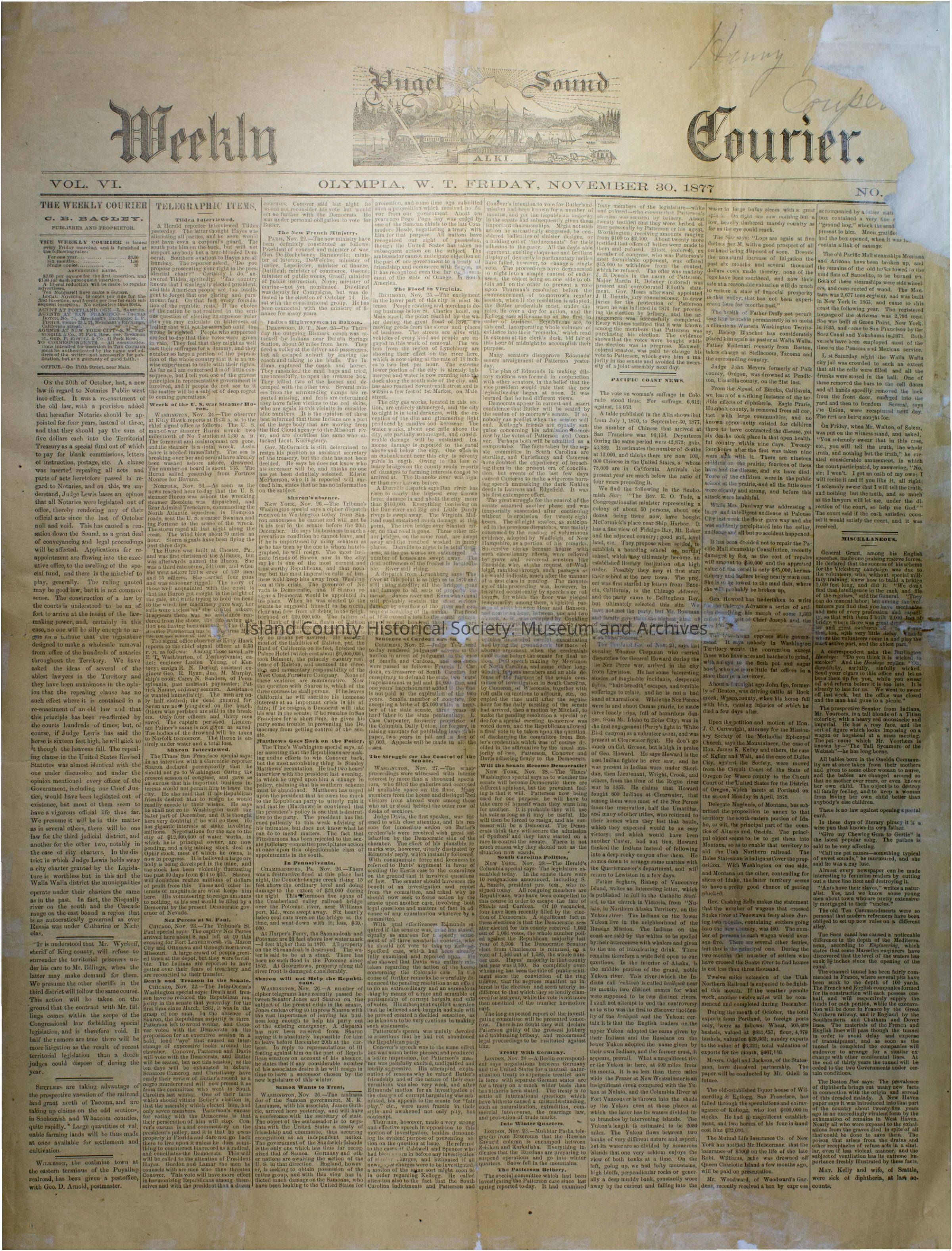 Puget Sound Weekly Courier - November 30, 1877