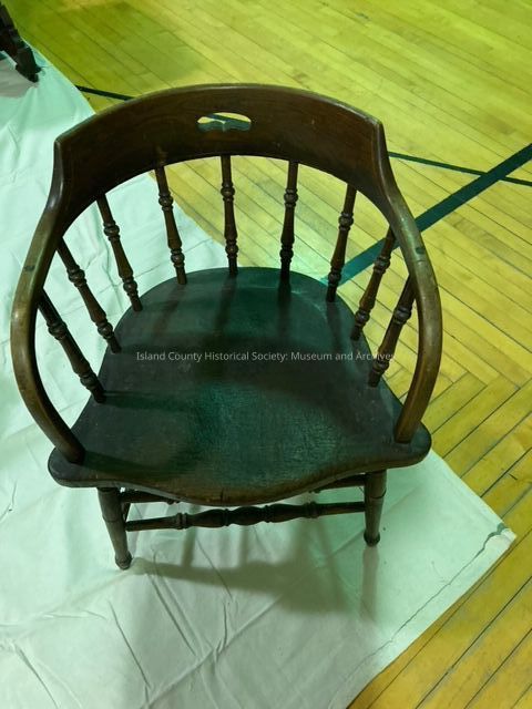 Bar chair from Fort Casey, to be given to Ft. Casey when museum is established. Oak bar chair from Ft. Casey