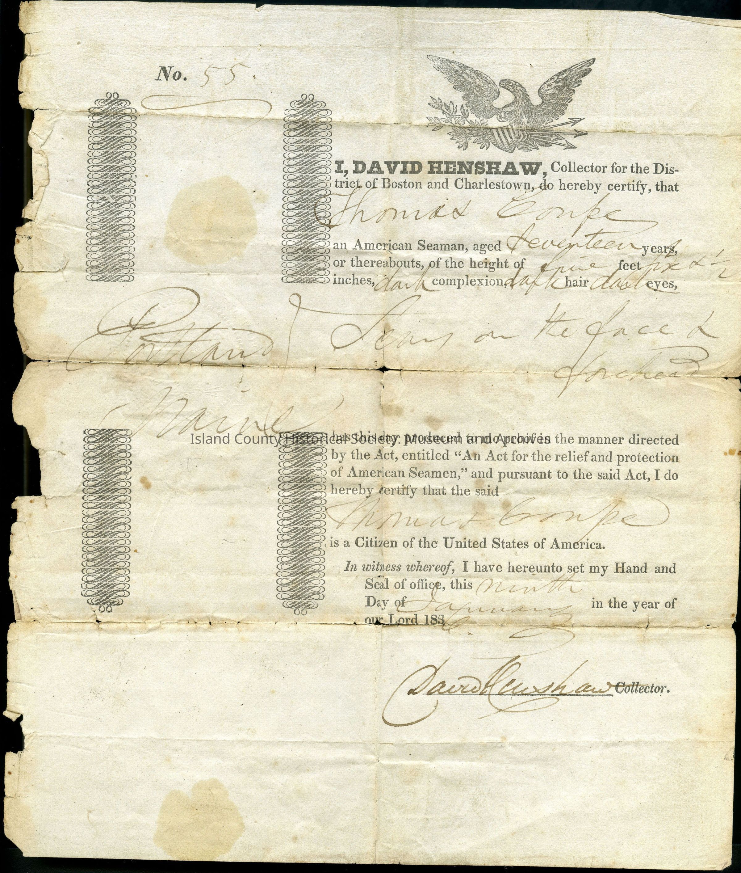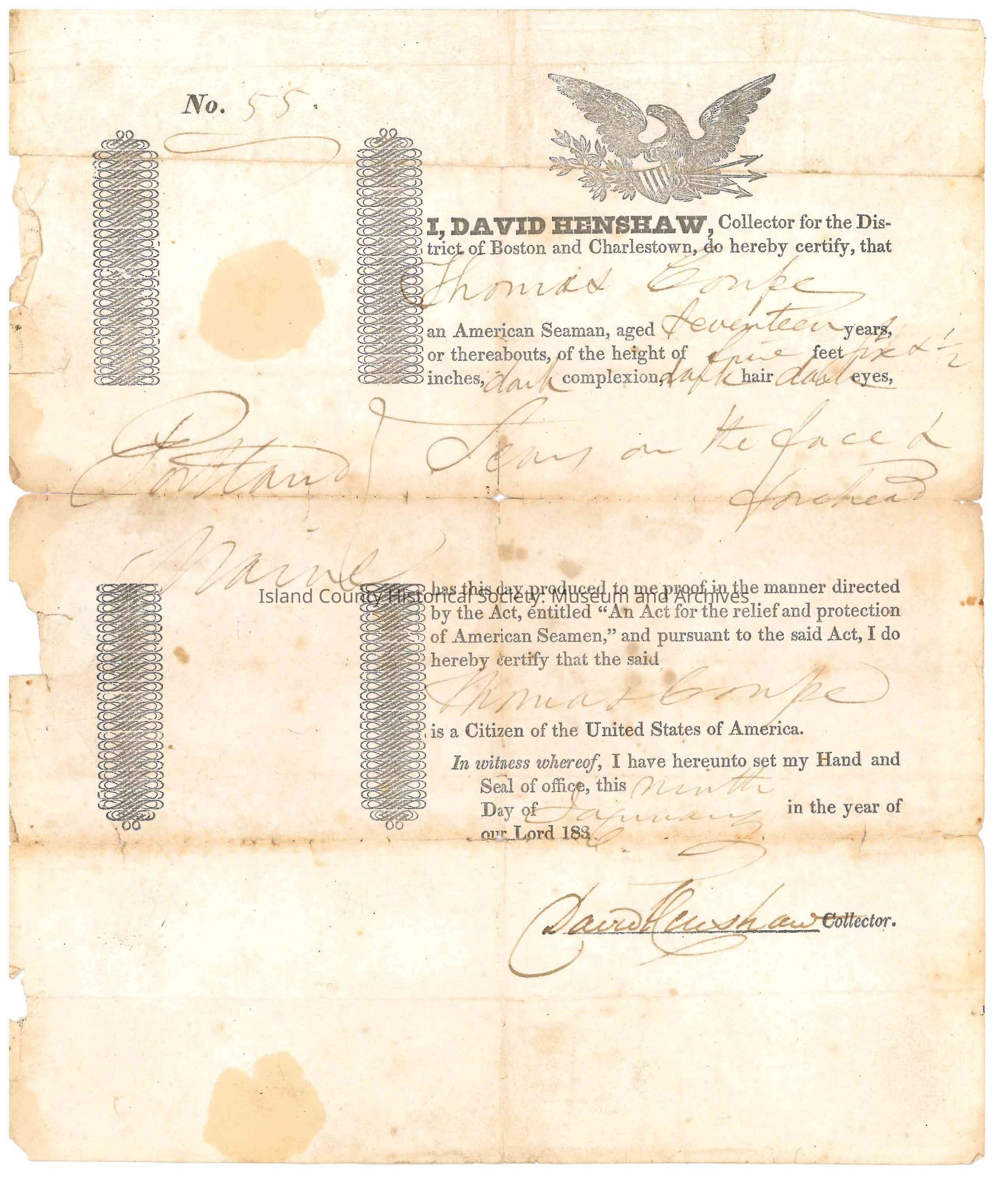 Captain Thomas Coupe Citizenship document, signed by Thomas Coupe.