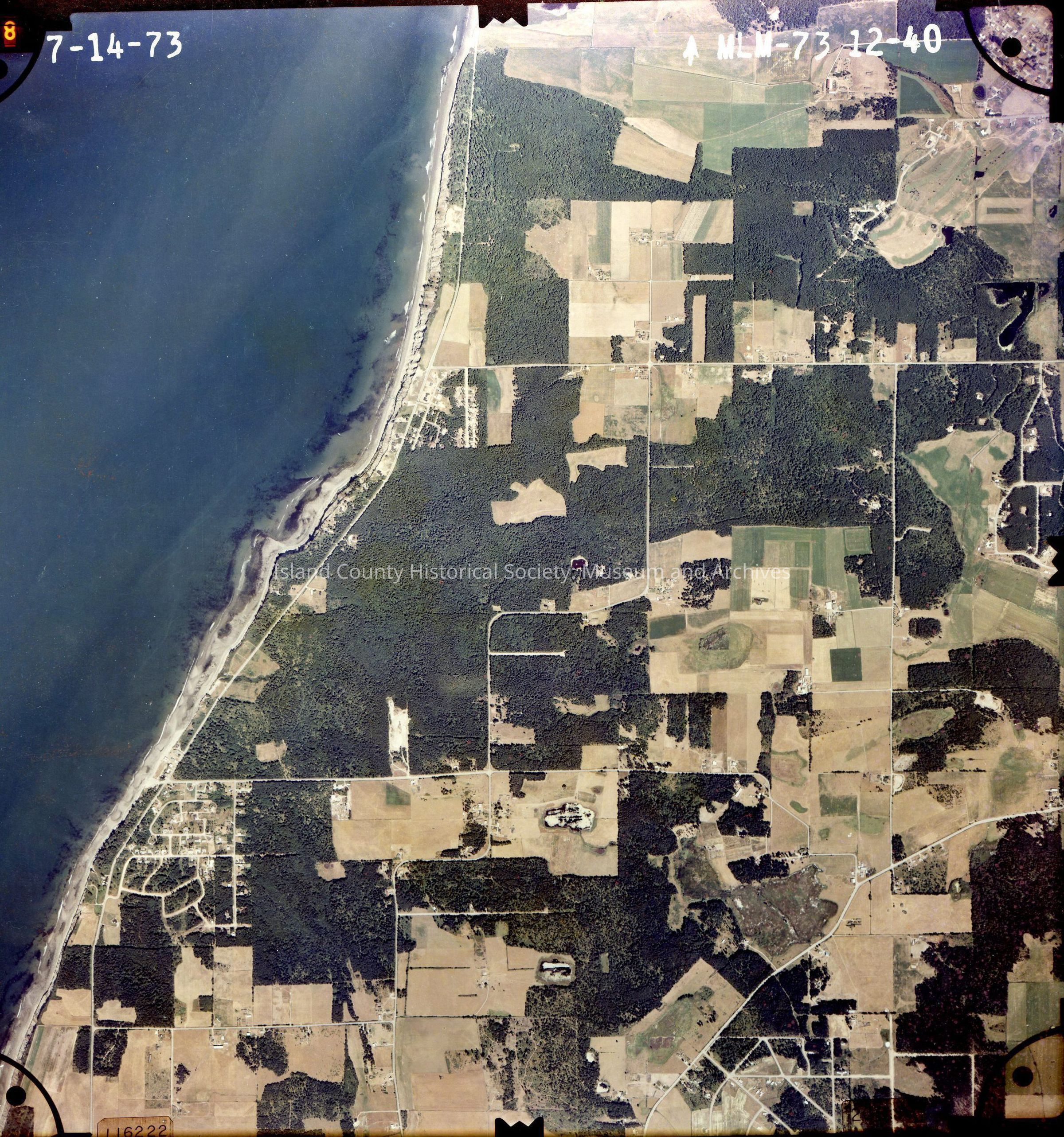 San de Fuca area and surrounding farmland with coastline. W Beach Road running along coastline.