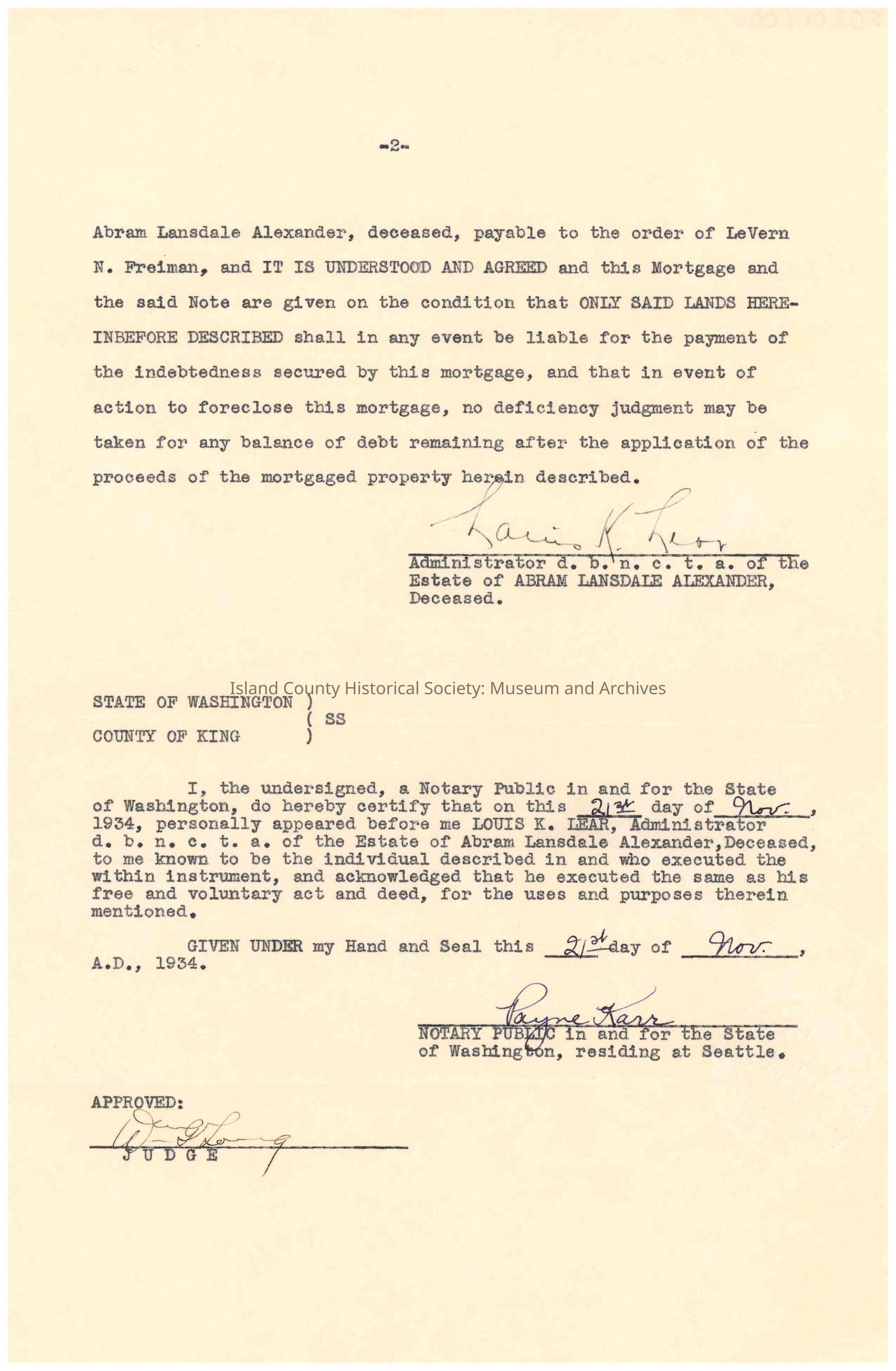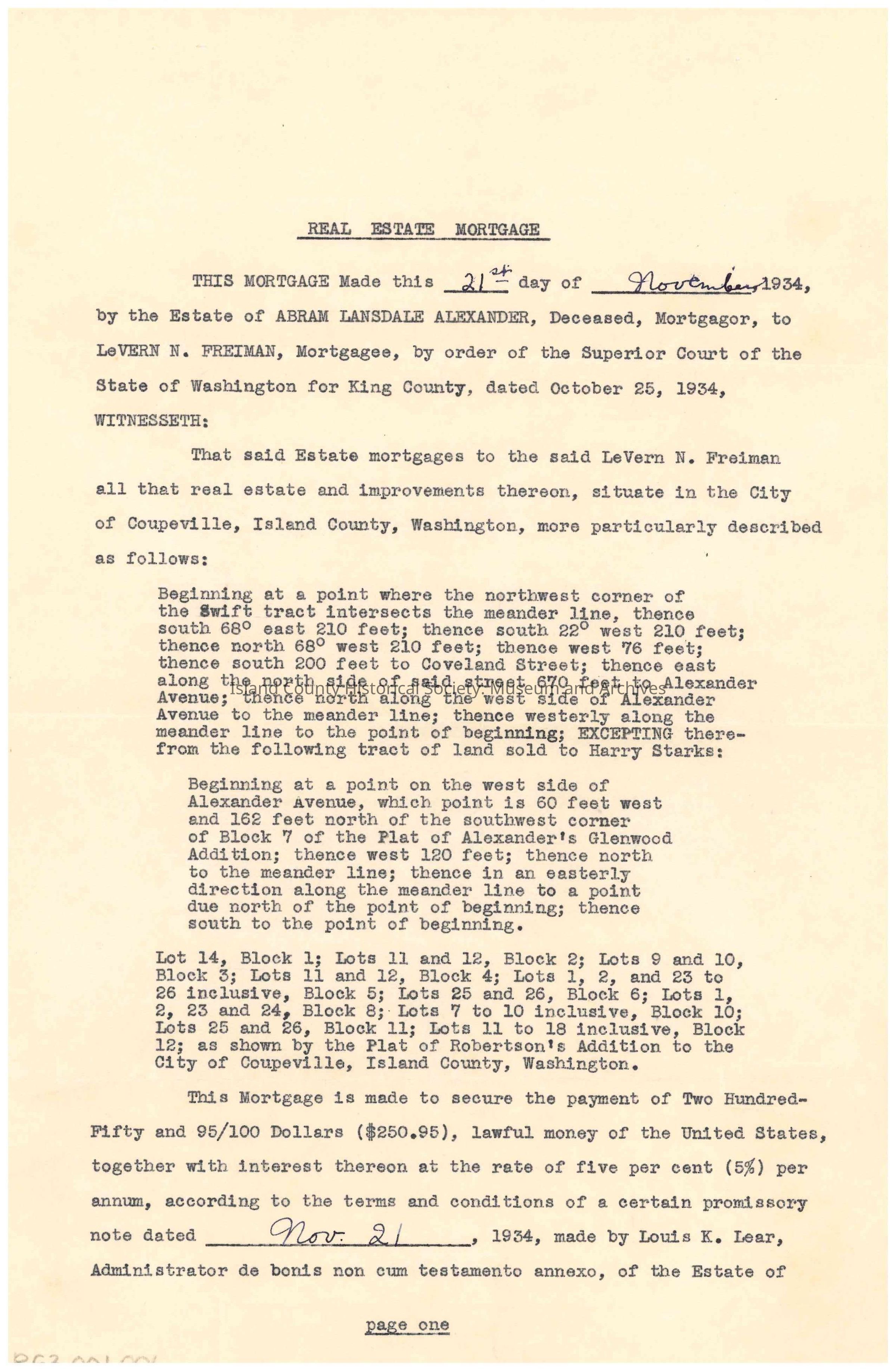 Mortgage between Abram Lansdale Alexander, deceased, and LeVern N. Freiman, mortgagee.