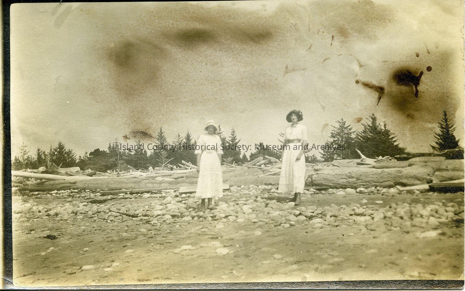 A photo of two women standing outside. There is discoloring in the sky area.Made/Created