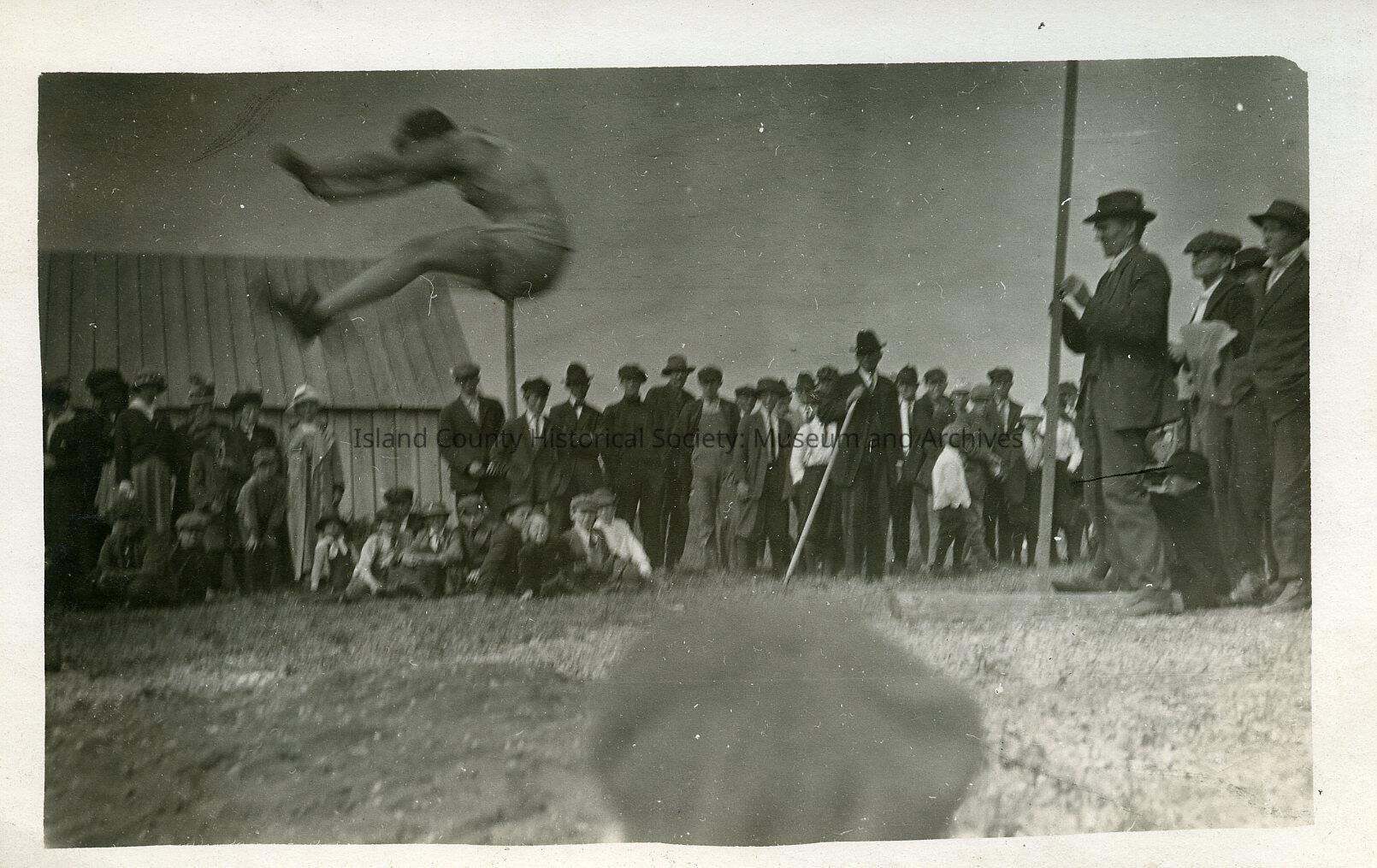 A photo of a large crowd of people watching a man jumping.Made/Created