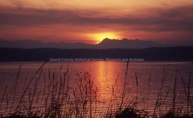 Photograph of a sunset over the water, likely on Whidbey Island.Photograph Details