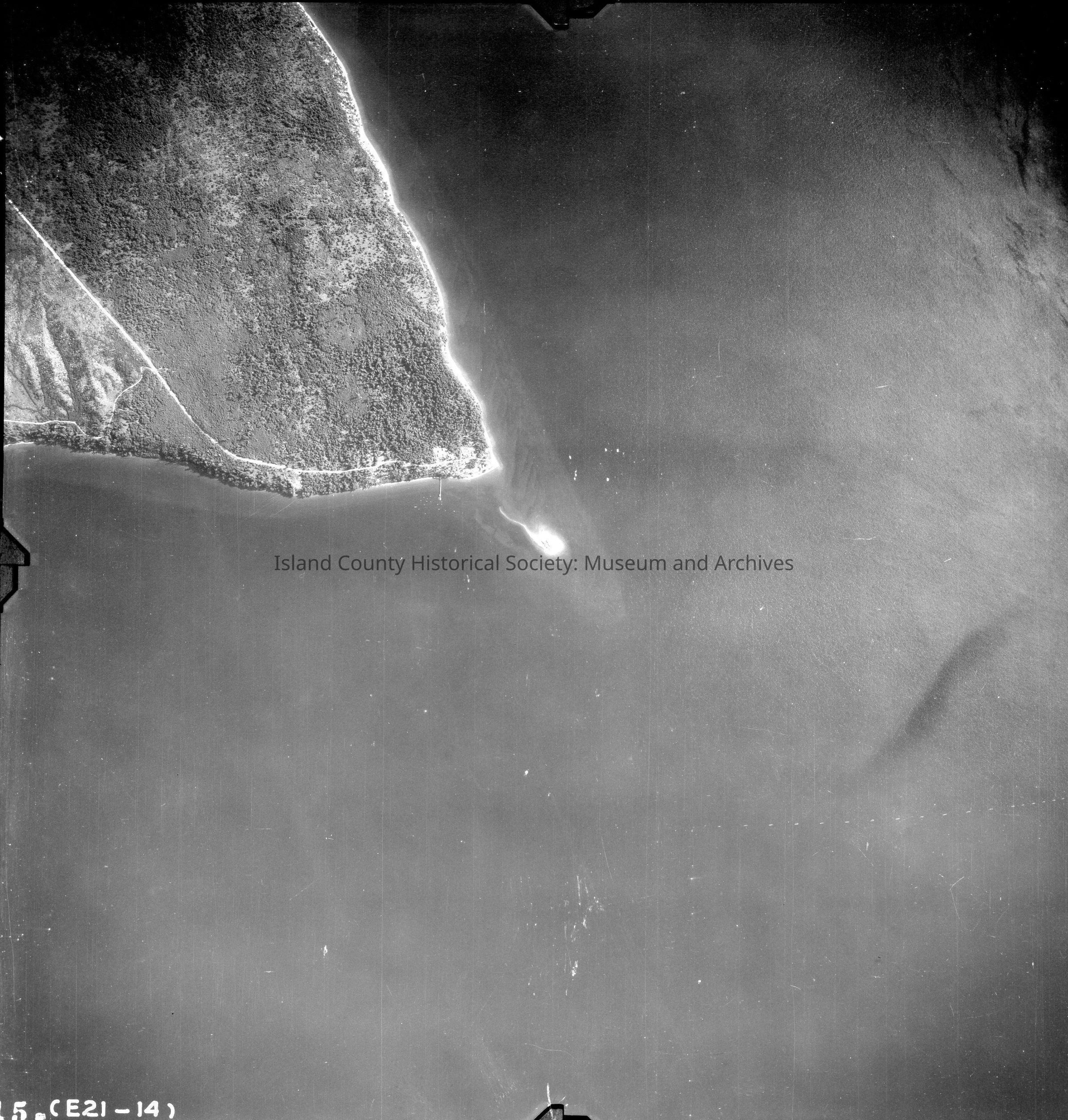 The eastern point of Holmes Harbor and Baby Island. Water makes up most of the image. Land is in the south east corner